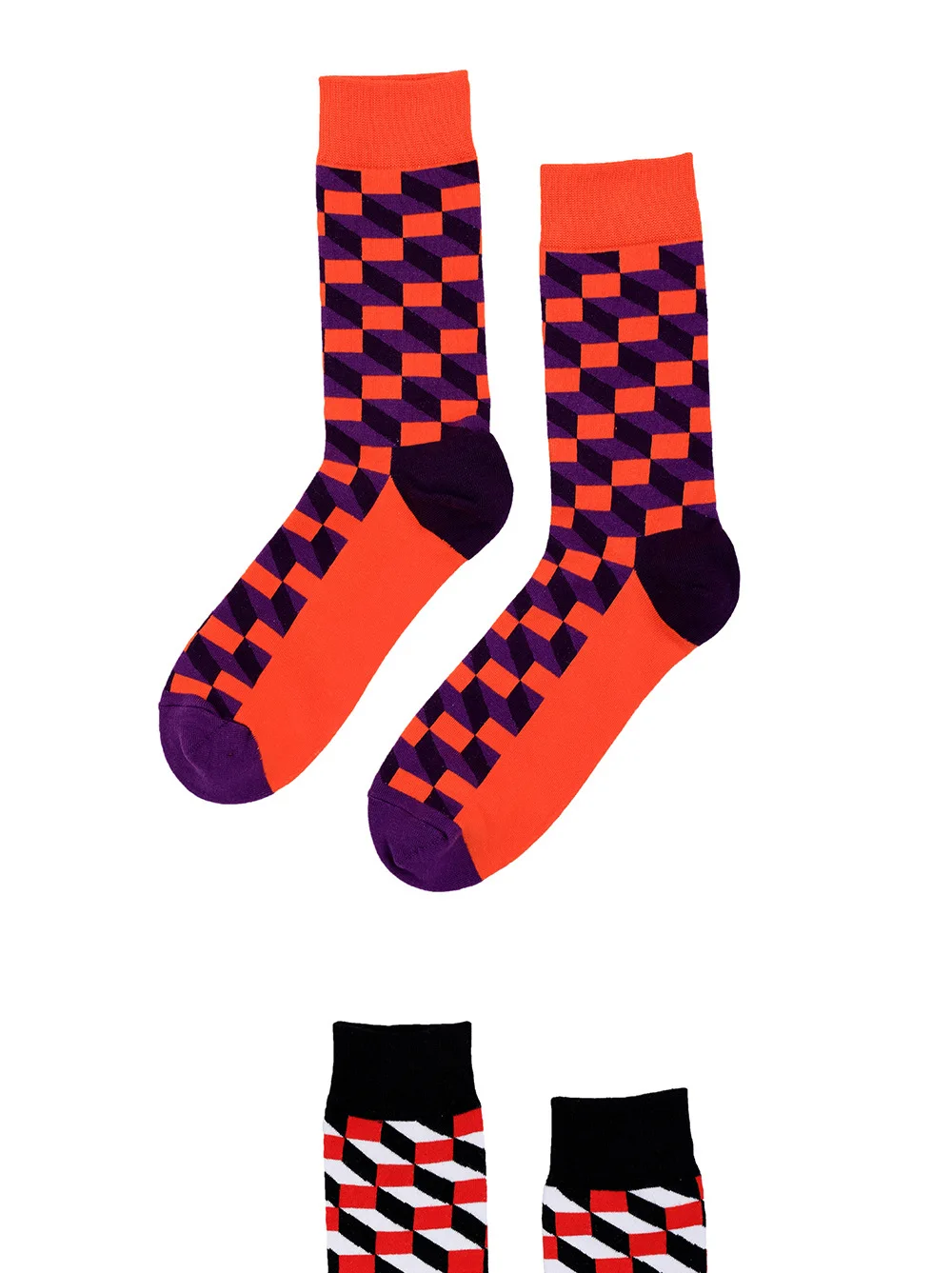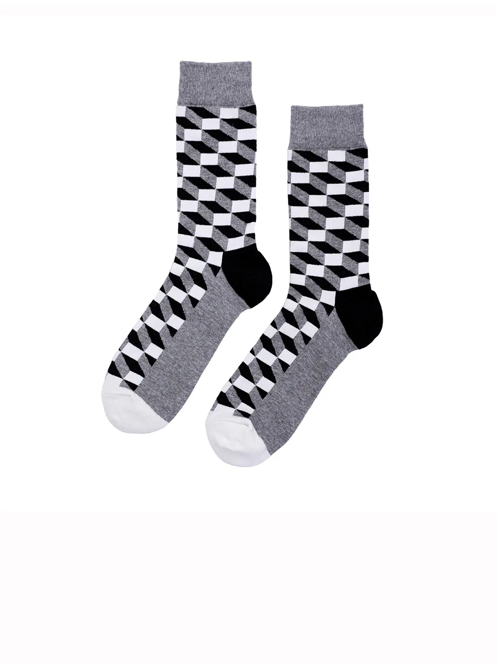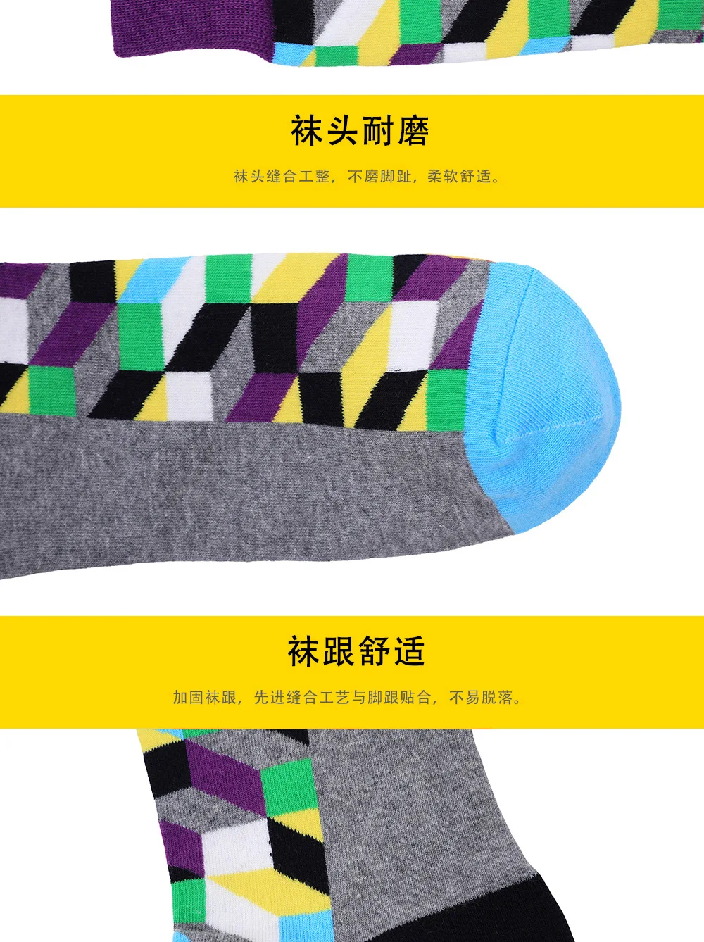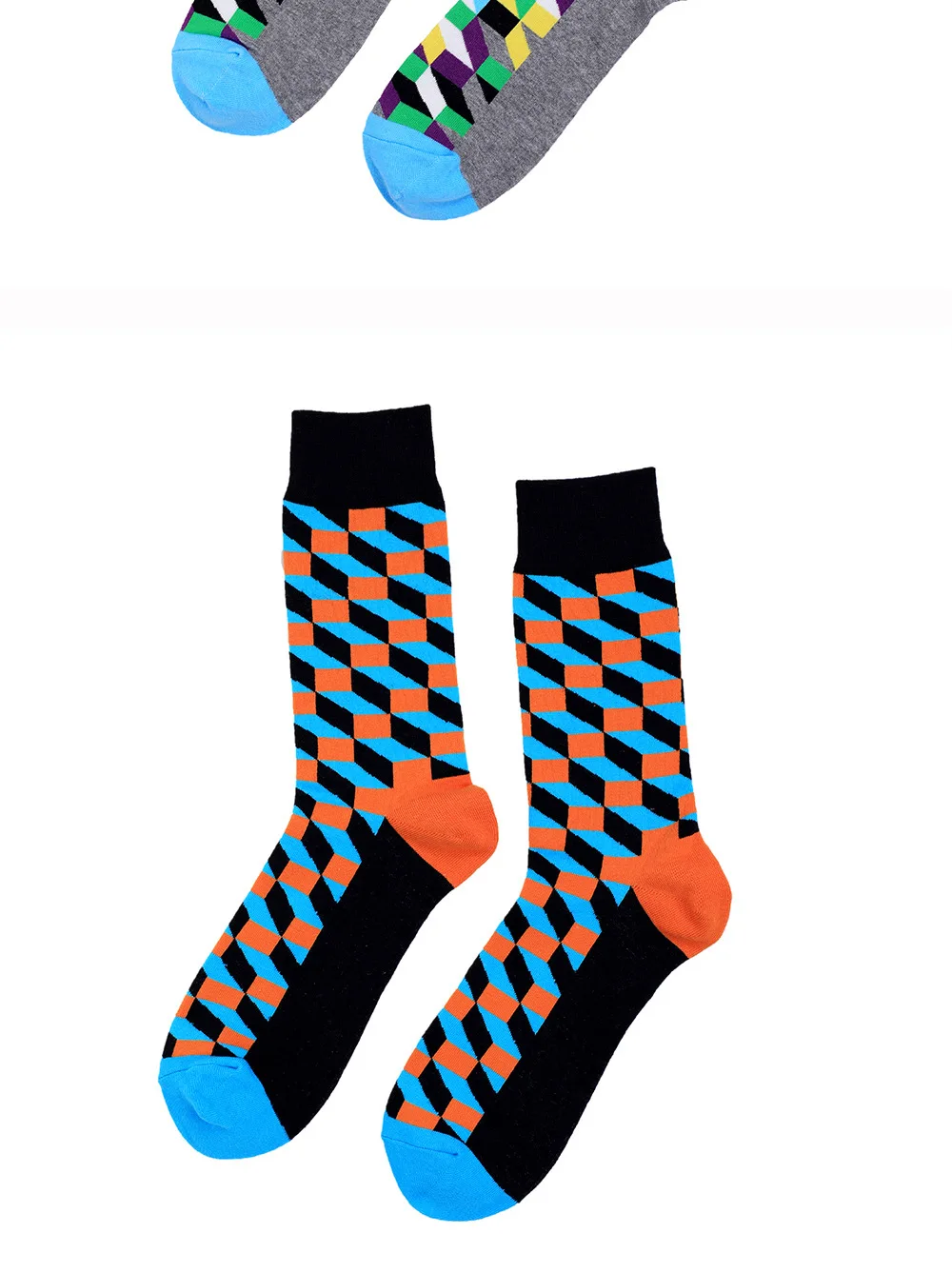Мужские носки удобные чесаные хлопковые забавные Фэнтези ромбовидные решетки с волнистым узором повседневные Счастливые новые вечерние подарочные носки