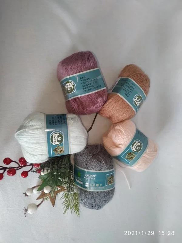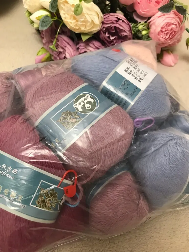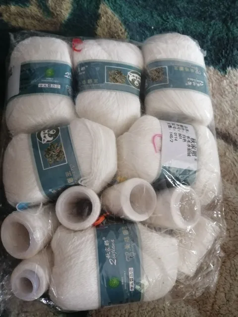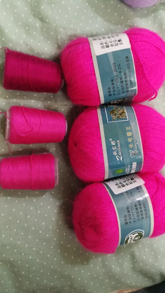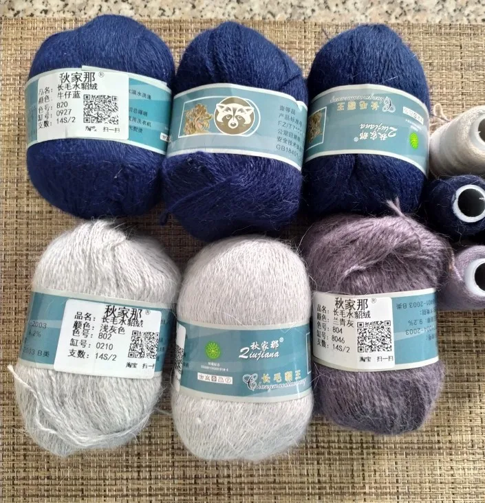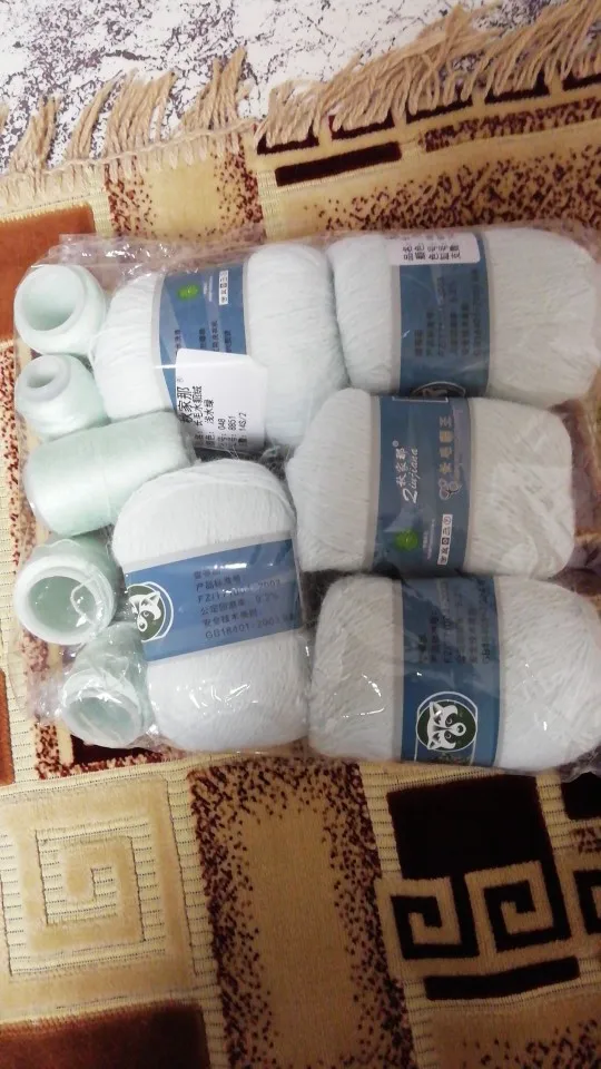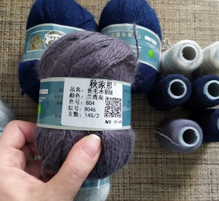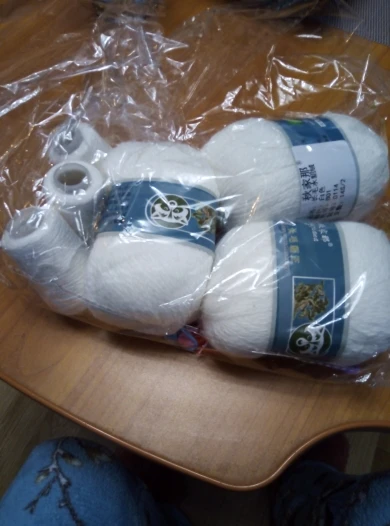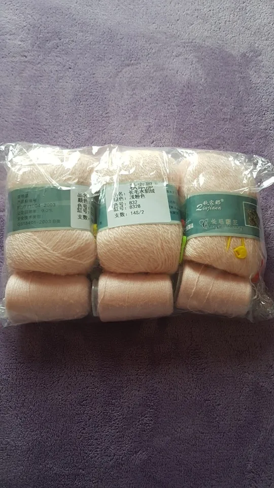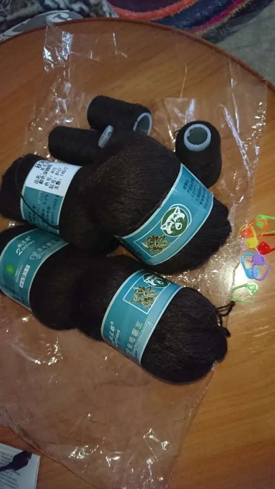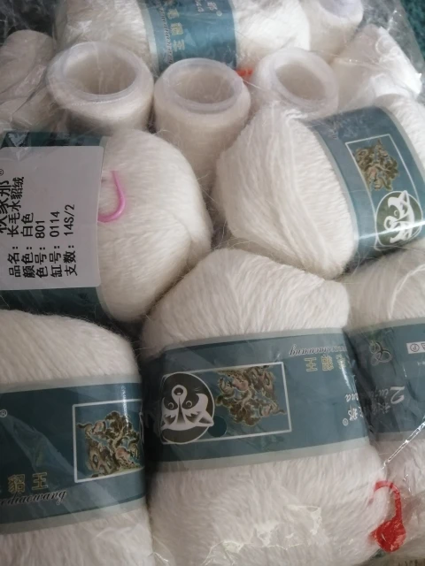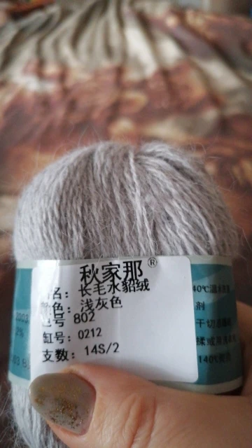 Нитки получила быстро. Моток пушистых 50 г (написано в описании около 342 м) и катушка тянущихся тонких таких же (написано в описании 20 г катушка). Надписи на этикетке в описании на английском, а на самом деле на китайском (сравнивала с фото в описании). Мягкие, "не кусаются" при прикладыванием к коже. На чистую шерсть не похоже, но шерсть есть (пробовала поджигать - запах горелой шерсти есть, но шарик сгоревшей нити не рассыпается при растирании между пальцами, то есть есть синтетика какая-то).На этикетке по китайски написано что-то с двоеточием, после чего стоит цифра 9,2 процента. В описании написано, что гипоаллергенные, антистатические, теплые и не скатываются - если так, то должны быть неплохие. Пока все это ещё не проверить. И что на китайском на мотке написано не понятно, хотелось бы перевести. В описании написано, что есть шерсть норки, но норковой шерсти, насколько я знаю, не бывает, так как у норки мех короткий, из ее шерсти нить просто напросто не спрясть.