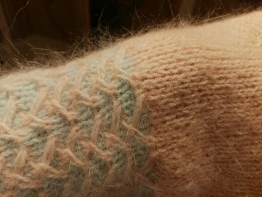 Мне пряжа понравилась. Дошла за 16 дней. Конечно же это не "пух норки" как заявлено в описании и в пряже много синтетических волокон. На ощупь очень мягкая, абсолютно не колючая. При вязании сильно лезет, после ручной стирки и отжиме в стиральной машине на 800 об. лезть практически перестала. Не уверена, что буду заказывать ее снова, т. к. потом очень много уборки после нее. Но как опыт вязания из этой пряжи, мне понравился) На капор ушло ровно 3 мотка + 2 доп. нити.