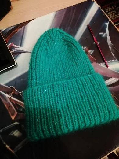 Вот такая чудесная шапочка получилась. ушло чуть меньше 2 мотков . в отворот еще пайетки добавила