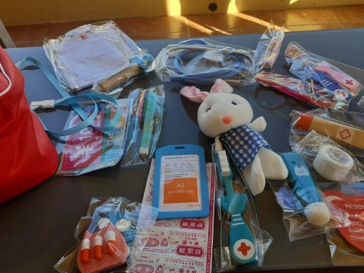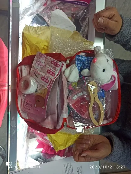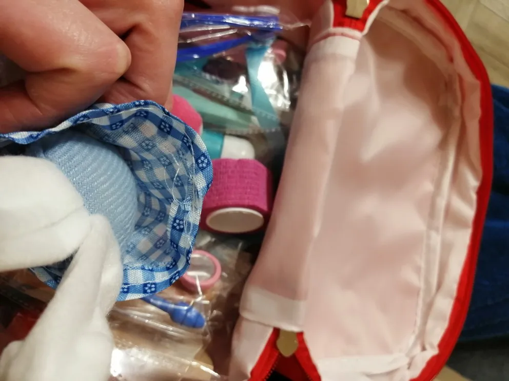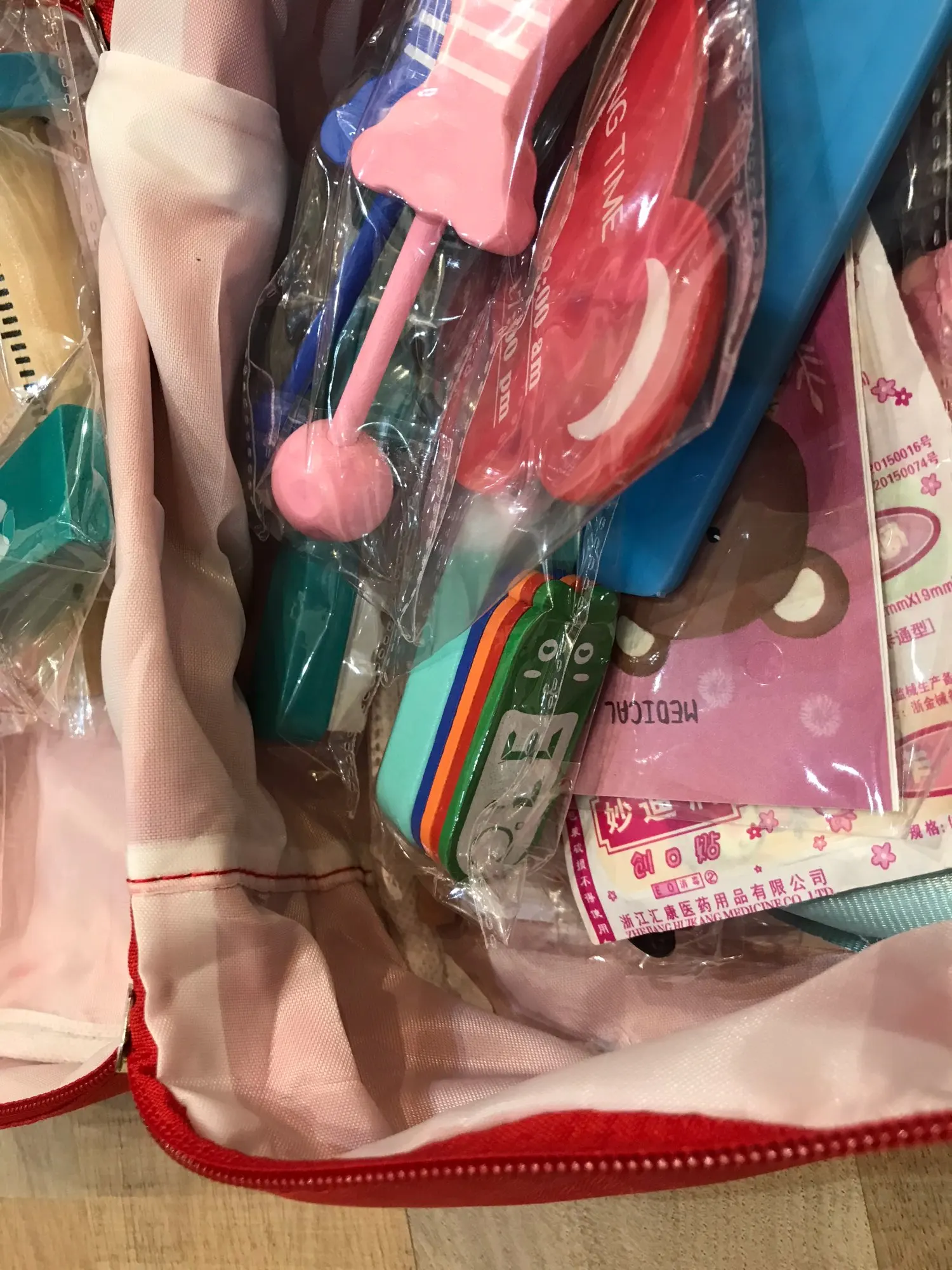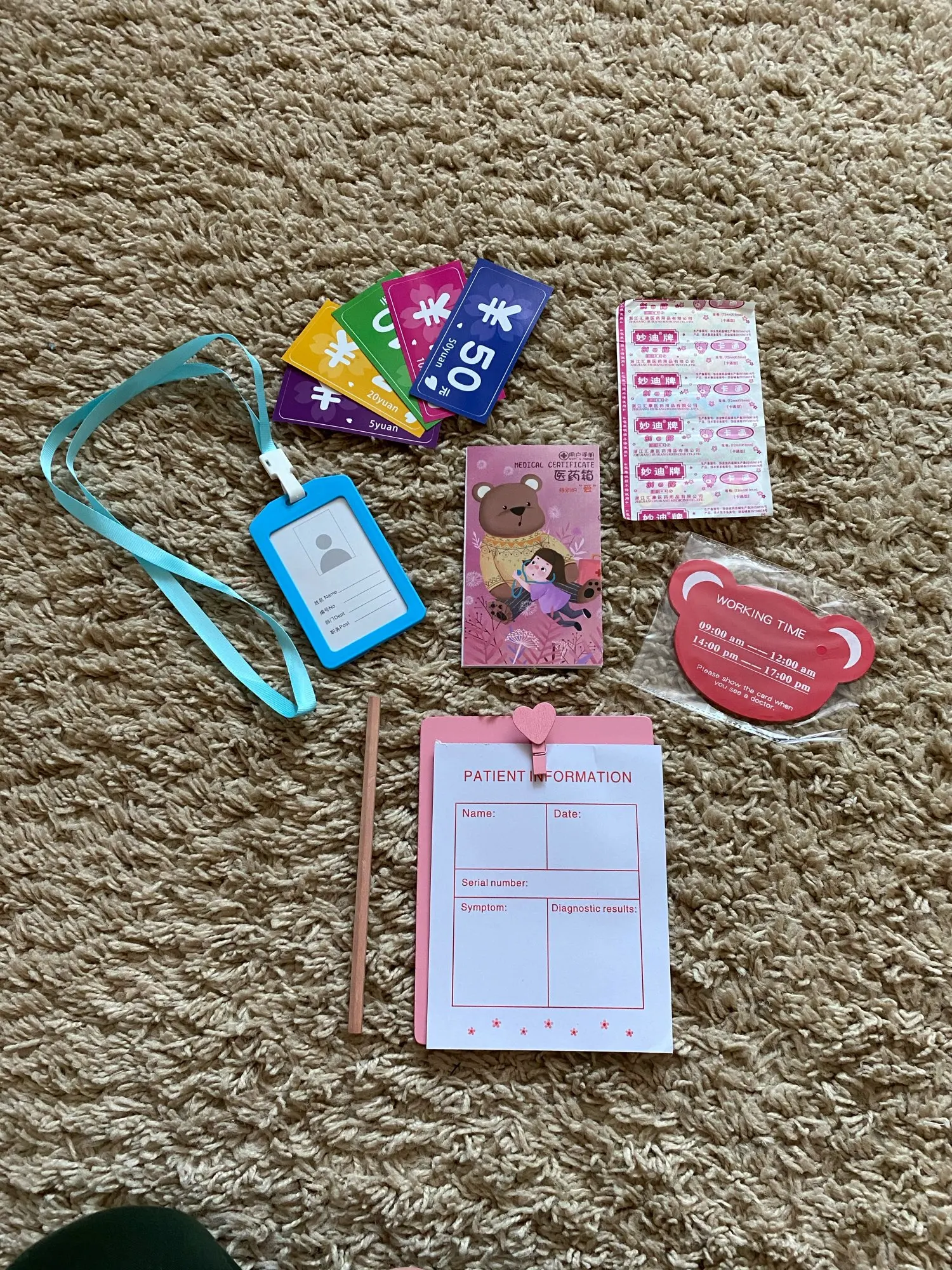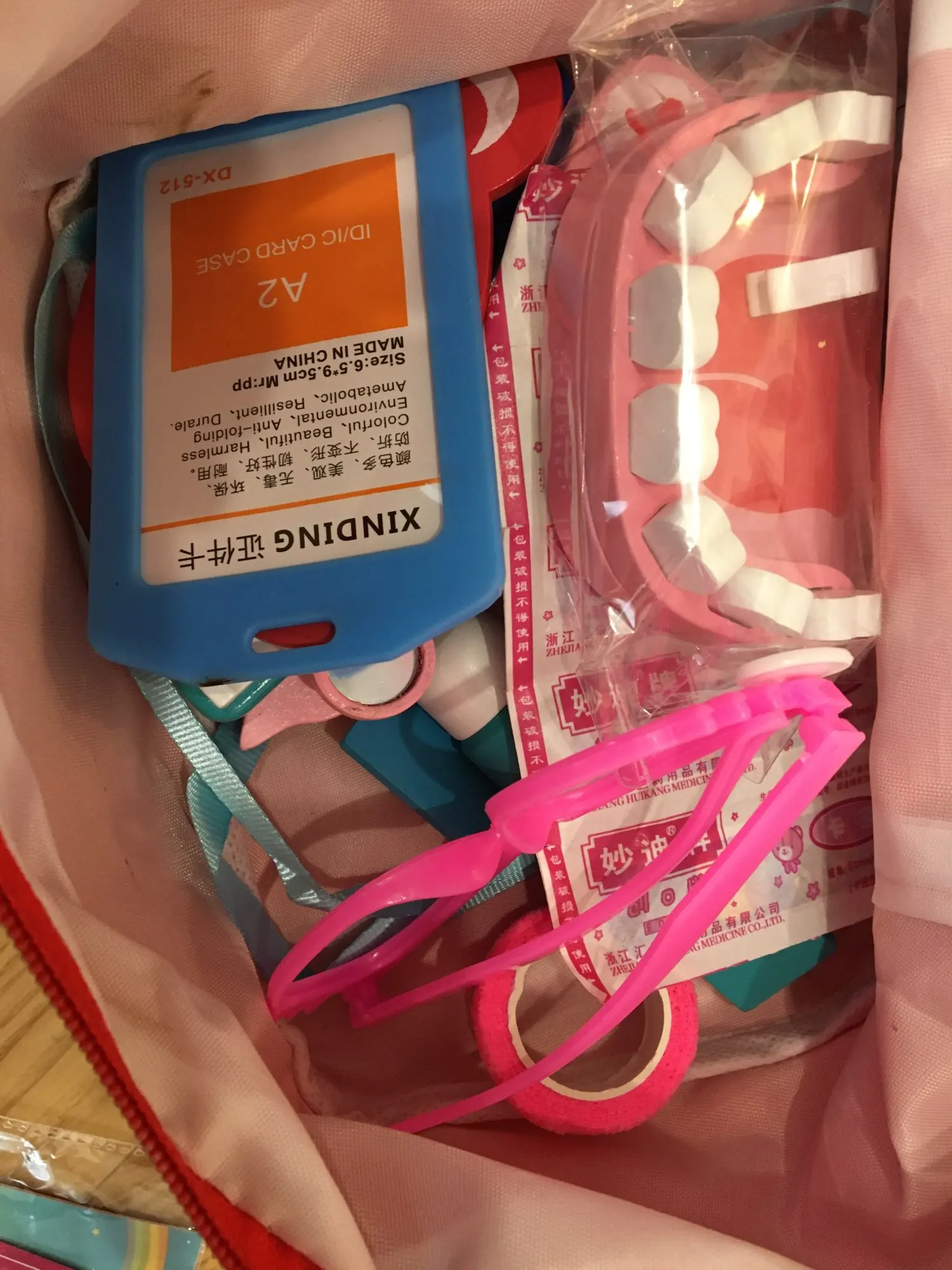 Посылка шла очень долго. И продавец неразговорчивый. Но ребёнок очень доволен игрушкой. Если поподробнее... Тюбики соединяются с крышечкой магнитом. Шприц надавливается и отскакивает - на пружинке. Зеркало стоматологическое для зубов будто бы не настоящее. А вот стетоскоп для прослушивания тела - настоящий. Есть в наборе тонкие бумажки - деньги - и буклет с услугами + временем приема докторов, но, увы, там всё на китайском. Пластыри клеющиеся - настоящие. Есть запасной +1 зуб. Очень порадовал градусник со съемными пластинами для разной температуры тела. Он с изображением эмоций - мордочек. В нашем наборе таблетки слитные.. мне бы хотелось, да и ребёнку было бы интереснее, чтобы они были по отдельности - не приклеены - как зубы, например. Есть очки. Они из пластика. Было бы круто, если бы тоже из дерева. Единственное, что прям огорчило: зайка пришёл плохого качества, видны нитки на платье и под платьем. Пришёл без носа. И вшитые уши просвечивают под лбом - выглядит странно.