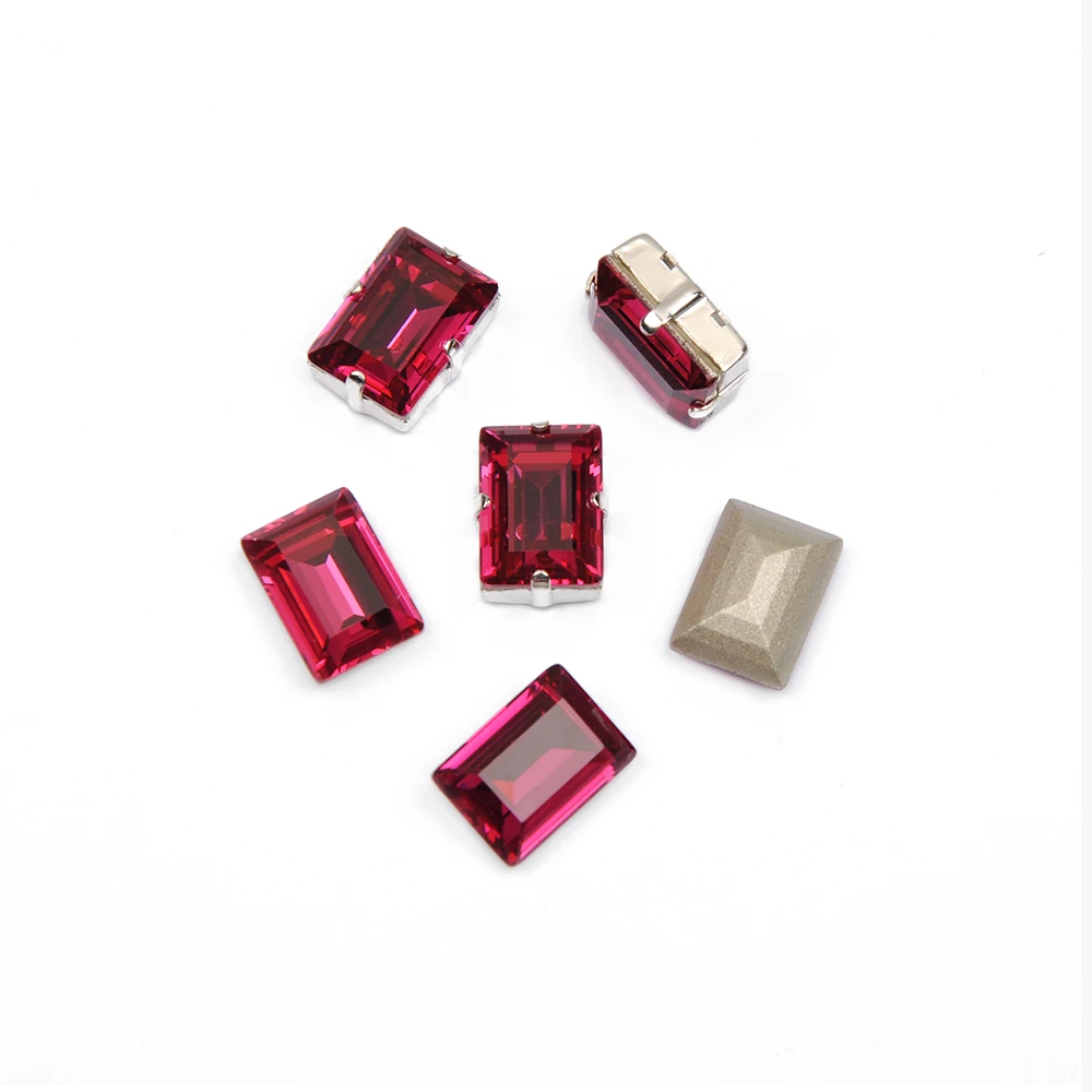 CTPA3bI Блестящий стеклянный кристалл цвета фуксии, пришивной камен...