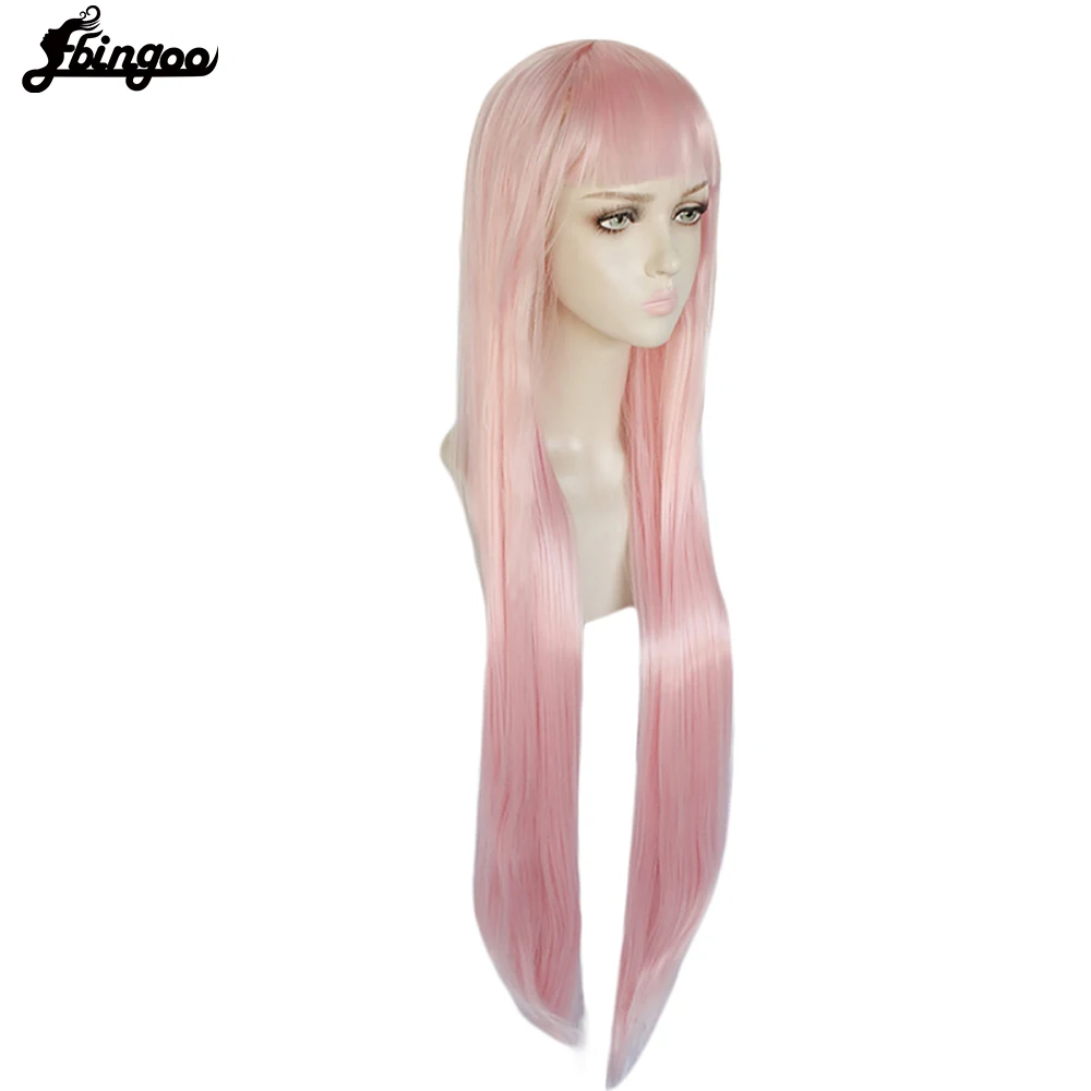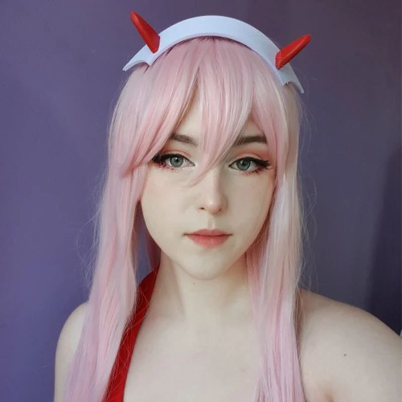 Шапочка для волос Ebingoo + дорогой в FRANXX Zero Two 02 Длинный натуральный прямой розовый синтетический парик для косплея с челкой для женщин