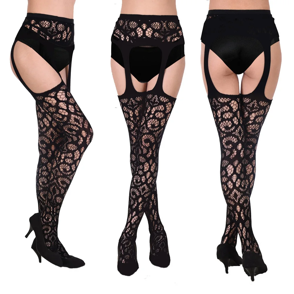 Сексуальные модные кружевные чулки черные прозрачные кружевные нейлоновые чулки с вырезами Эротическое белье для женщин Babydoll чулки с поясом