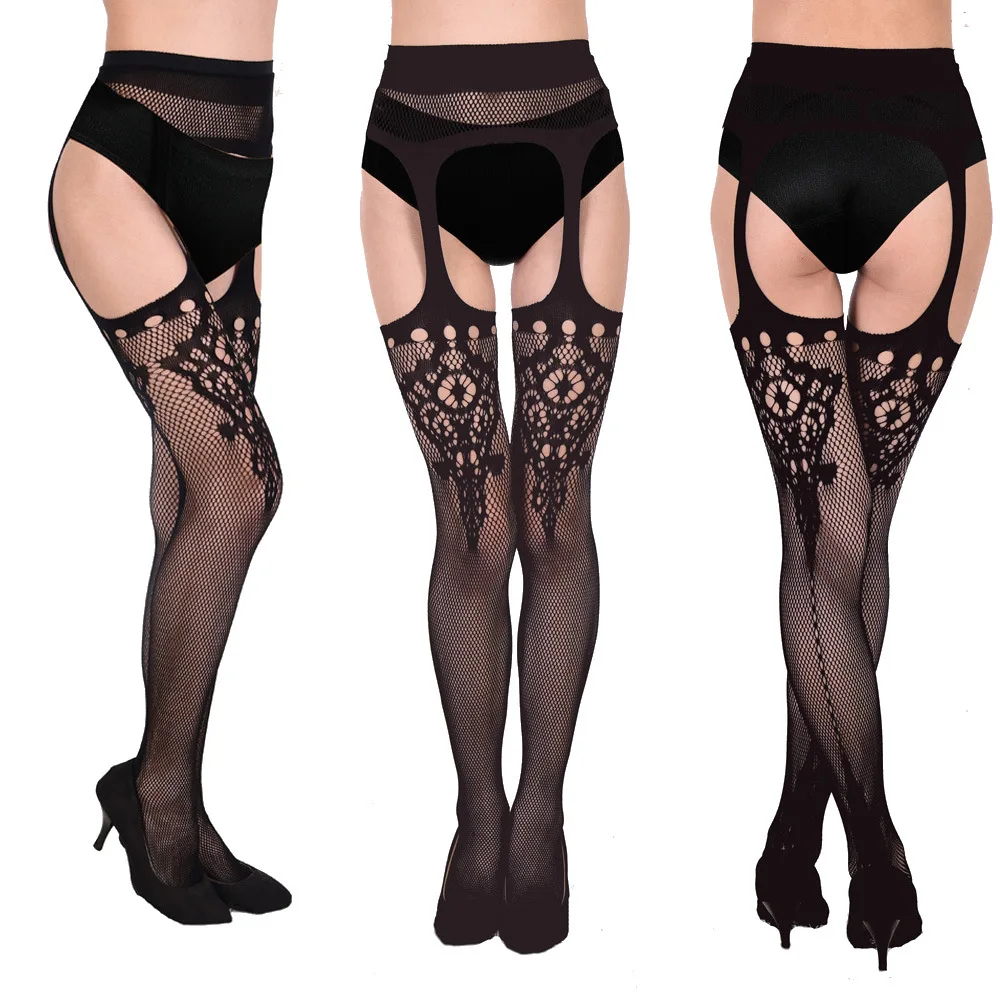 Эротическое белье для женщин, сетчатые чулки с открытой промежностью