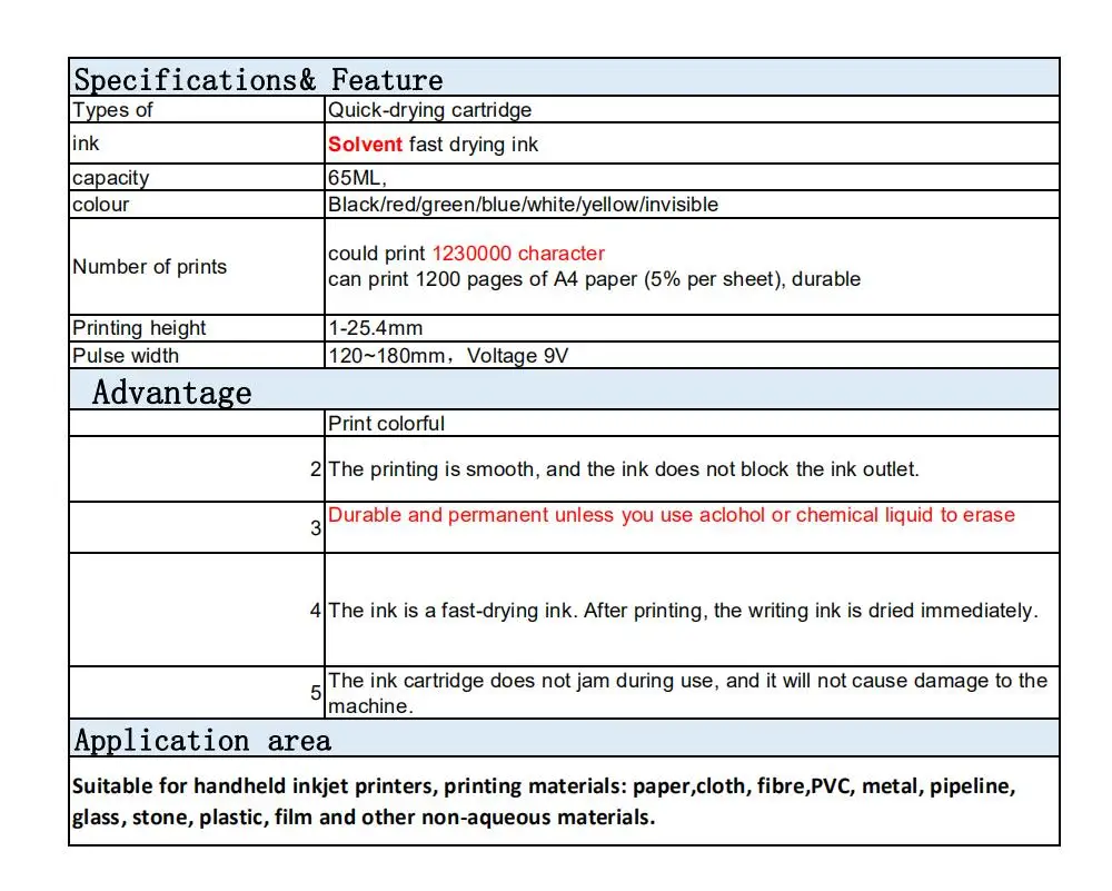 JS10 сопло 25,4 мм черный красный зеленый синий белый желтый Быстросохнущий чернильный картридж для 25,4 мм ручной струйный принтер