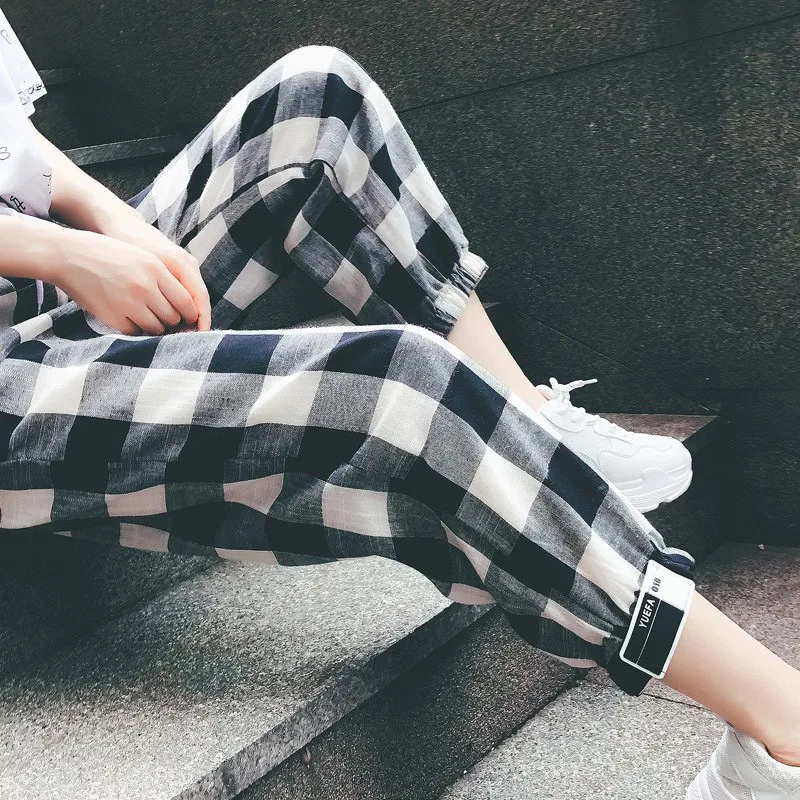 Брюки-шаровары женские прямые, до щиколотки, в клетку, в Корейском стиле