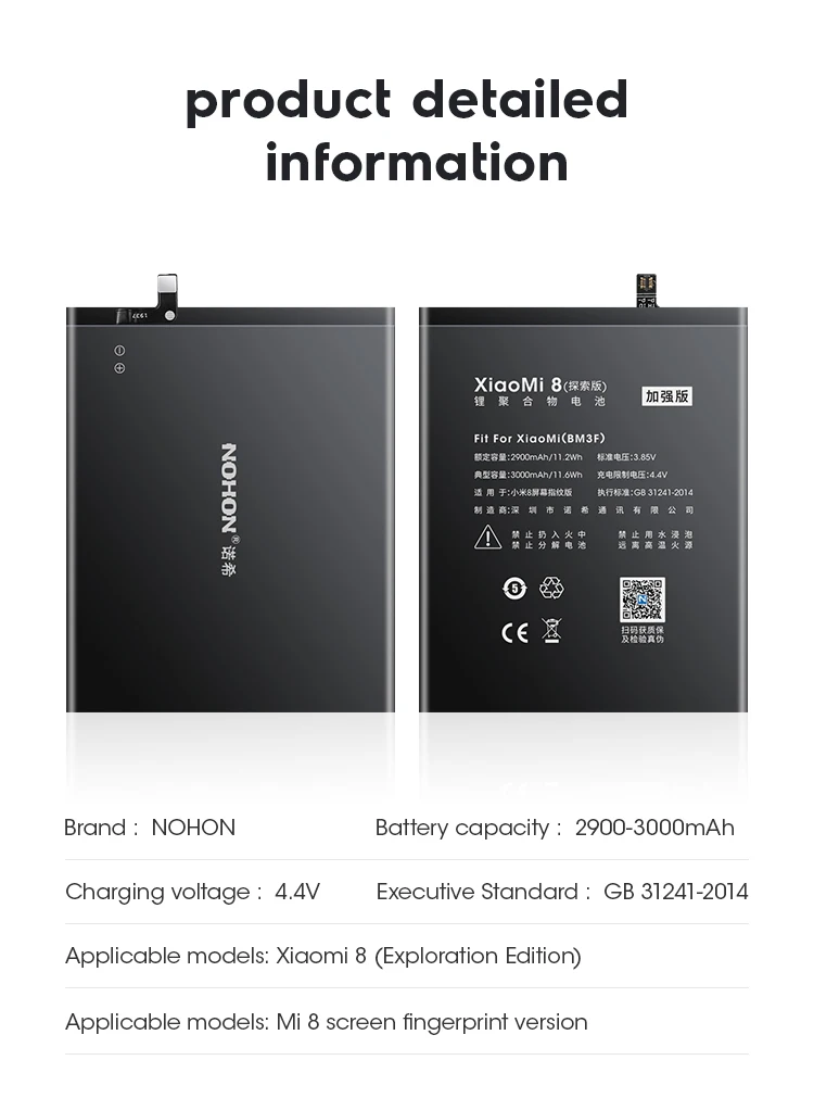 Аккумулятор NOHON BM3D BM3E BM3F BM22 BM39 BM36 для Xiaomi Mi8 Pro ...