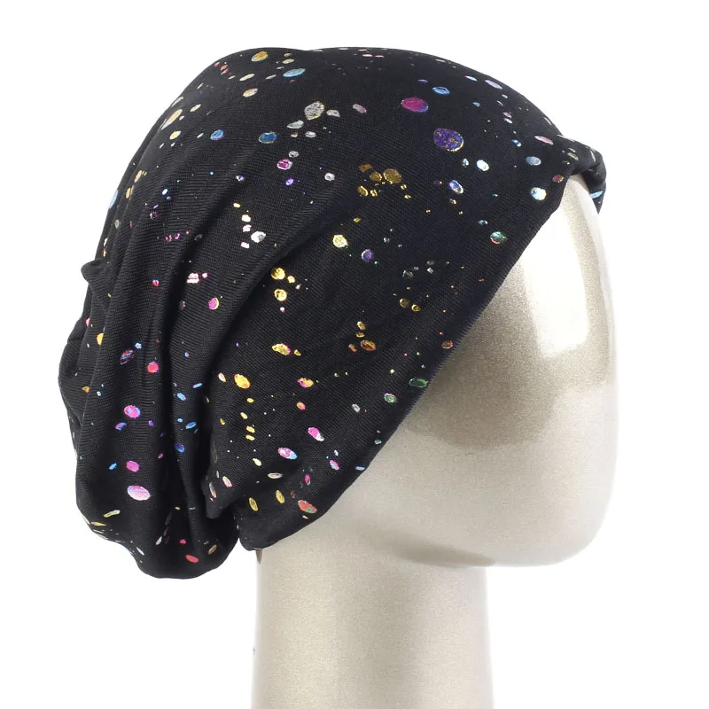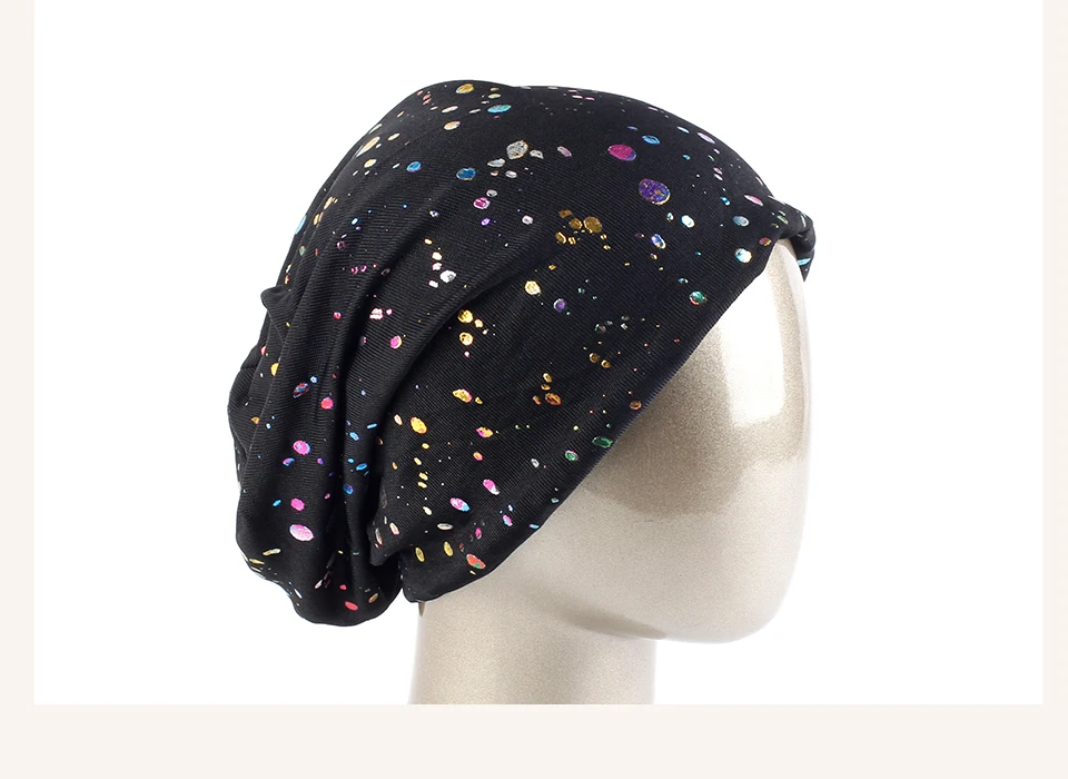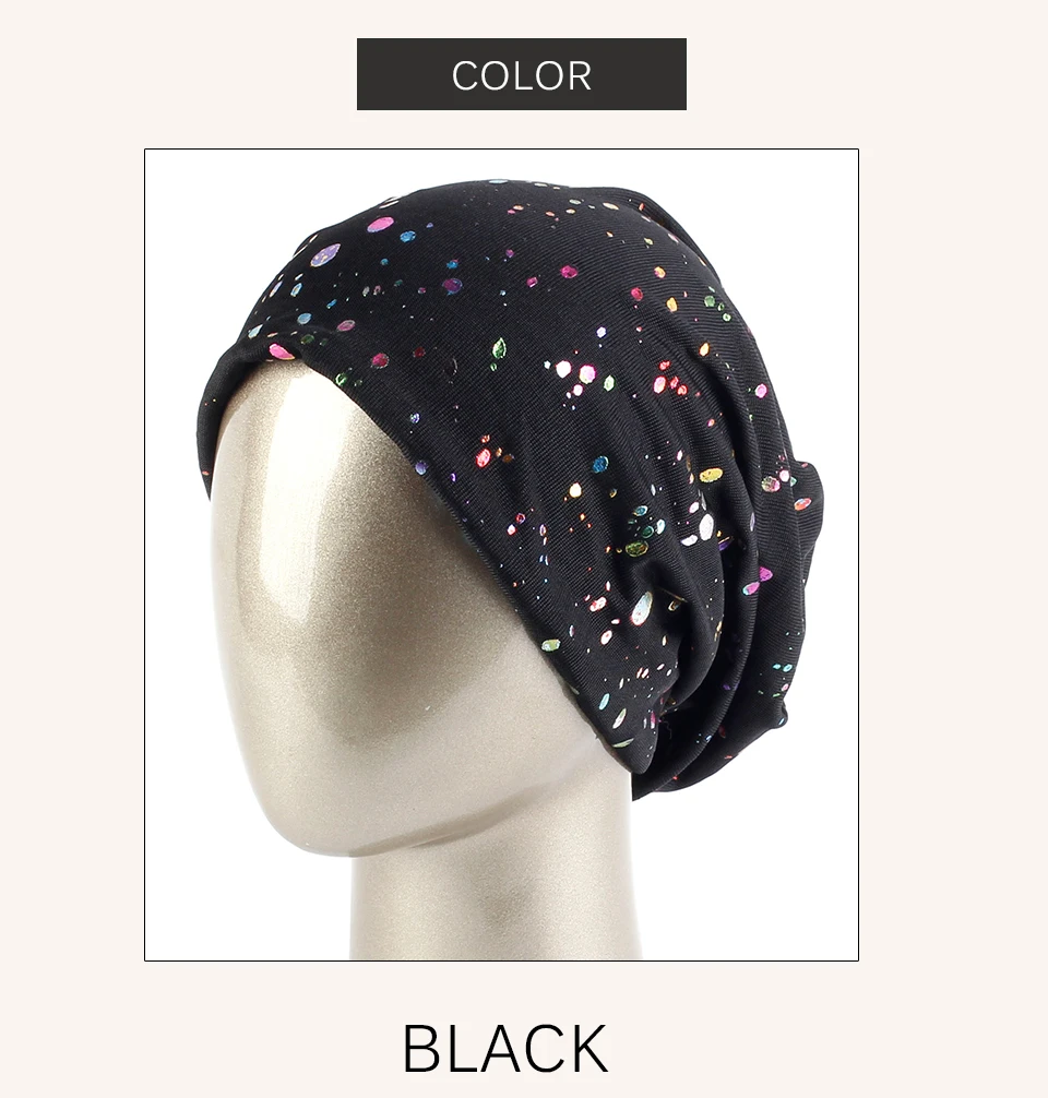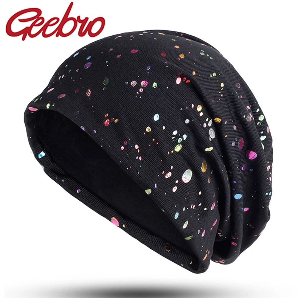 Geebro Женская разноцветная Шапка-бини с напуском, Модная хлопковая Шапка-бини с принтом для женщин, черные шапочки