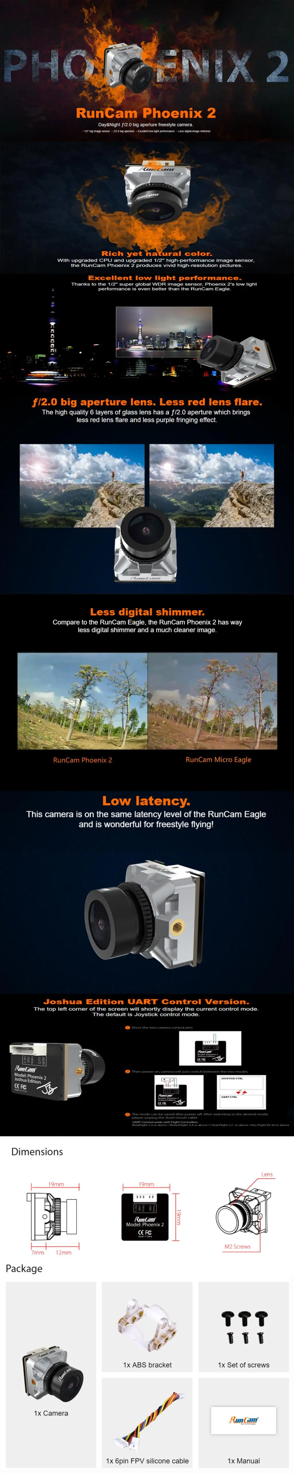 RunCam Phoenix 2, отличная производительность при слабом светильник щении, 1000tvl, 2,1 мм, FPV-камера свободного стиля, PALNTSC, переключаемая клавиатура