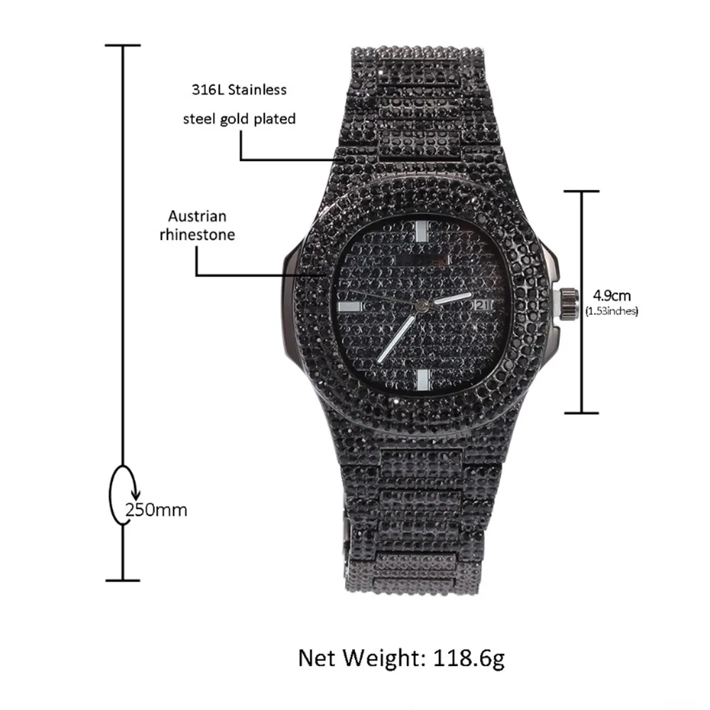 Роскошные мужские часы Майами с кристаллами в стиле хип-хоп, мужски...