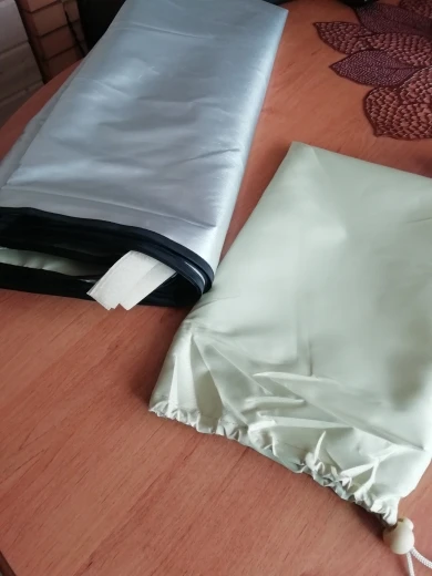 Доставка быстрая, отслеживалась. Чехол пошит качественно. Ткань добротная. Сверху зелёная, а снизу серебристая. Мне понравилось.