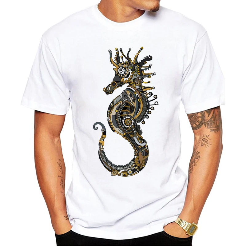 Новая Модная креативная Мужская футболка TEEHUB, хипстерские футболки с принтом морского конька в стиле стимпанк, классные Топы забавная футболка с коротким рукавом