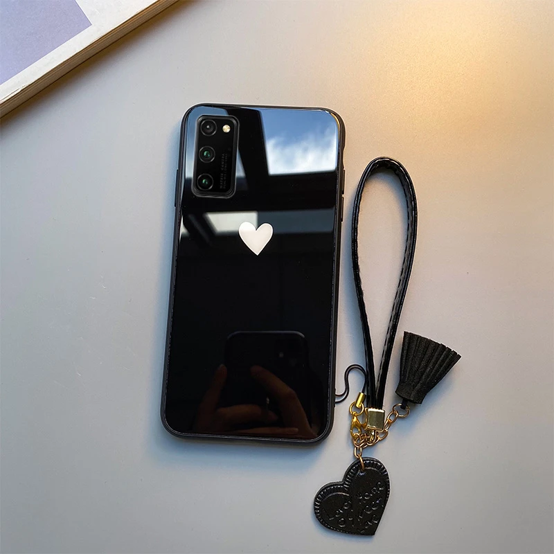 Чехол для Samsung Galaxy S20 Ultra, Жесткий Чехол из закаленного стекла с красным и черным сердечком, чехол для телефона Samsung S20 Plus