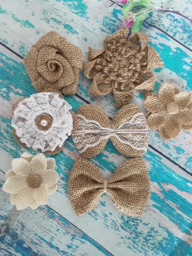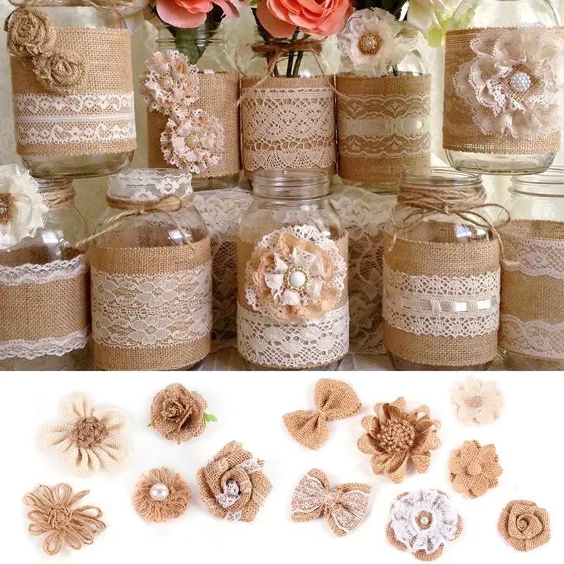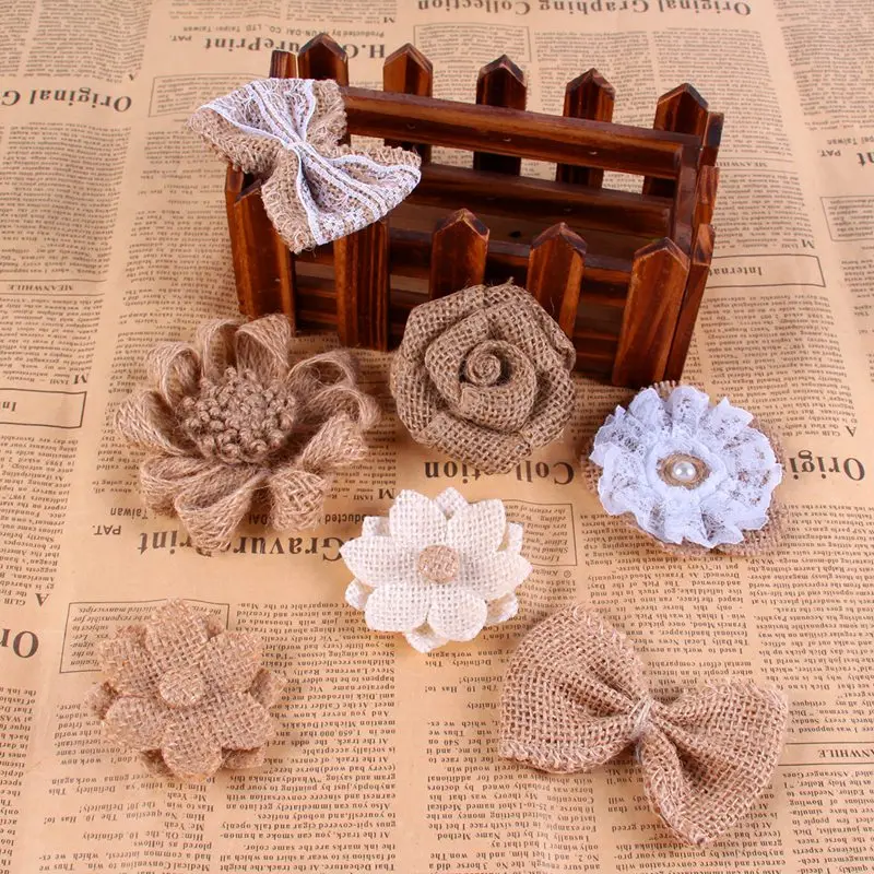 Fengrise джутовые цветы ручной работы из мешковины, винтажные Свадебные украшения для самодельного изготовления в деревенском стиле
