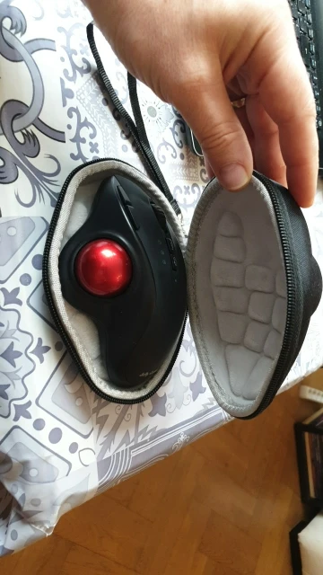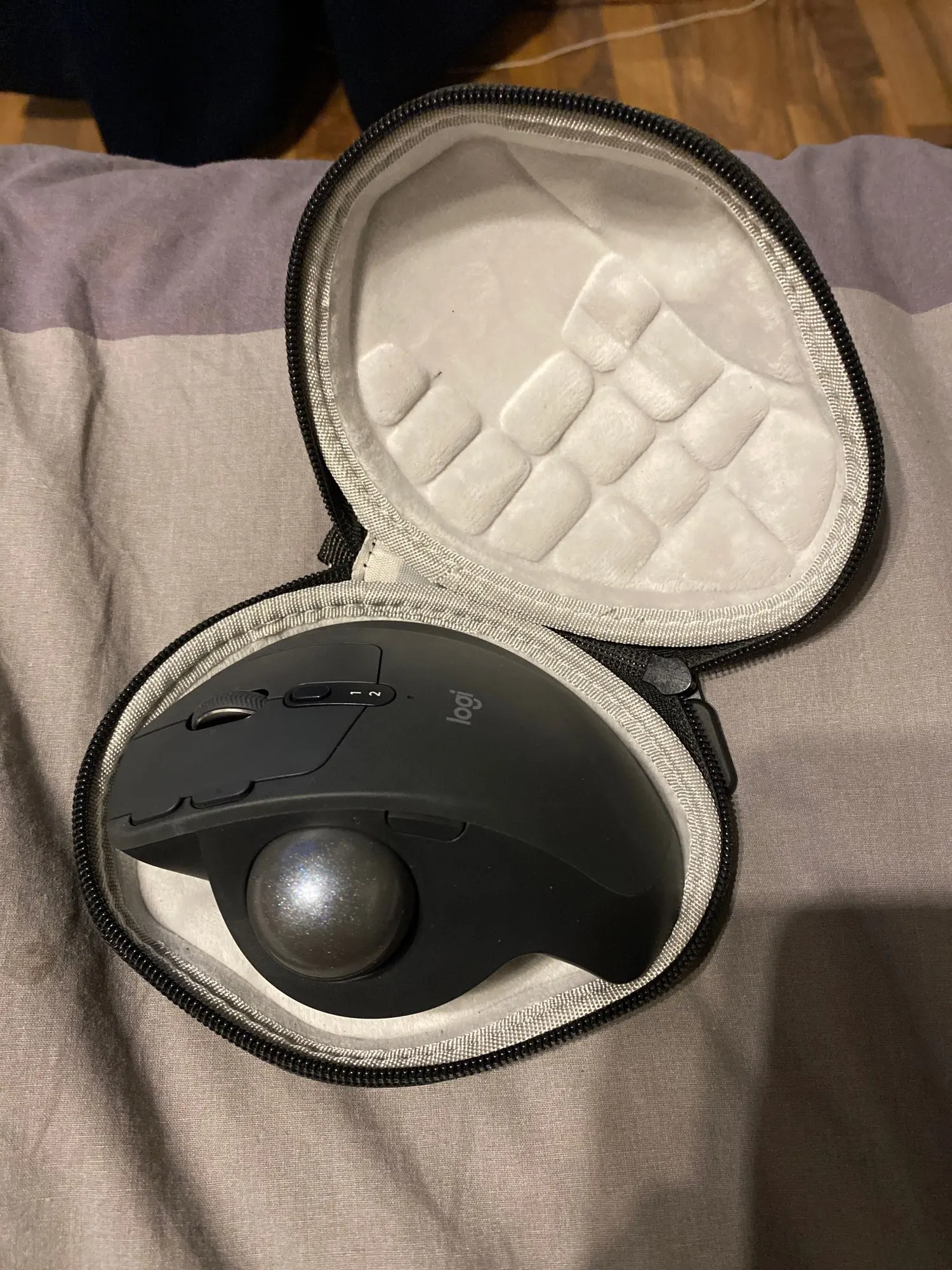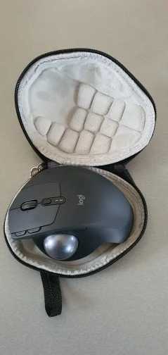 Чехол выглядит и на ощупь отлично. MX Ergo подходит именно там. Несмотря на то, что я не планирую носить свою мышь, я буду использовать ее как пылезащитный чехол, я думаю, вы можете использовать ее в качестве футляра для переноски, потому что это действительно Твердый чехол. Я не уверен, может ли зарядный кабель поместиться внутри.