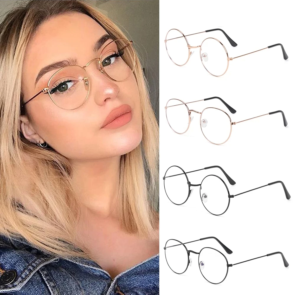 Винтажные круглые очки для чтения с прозрачными линзами, Модные Золотые круглые металлические очки в оправе, оптические очки для мужчин и женщин в оправе