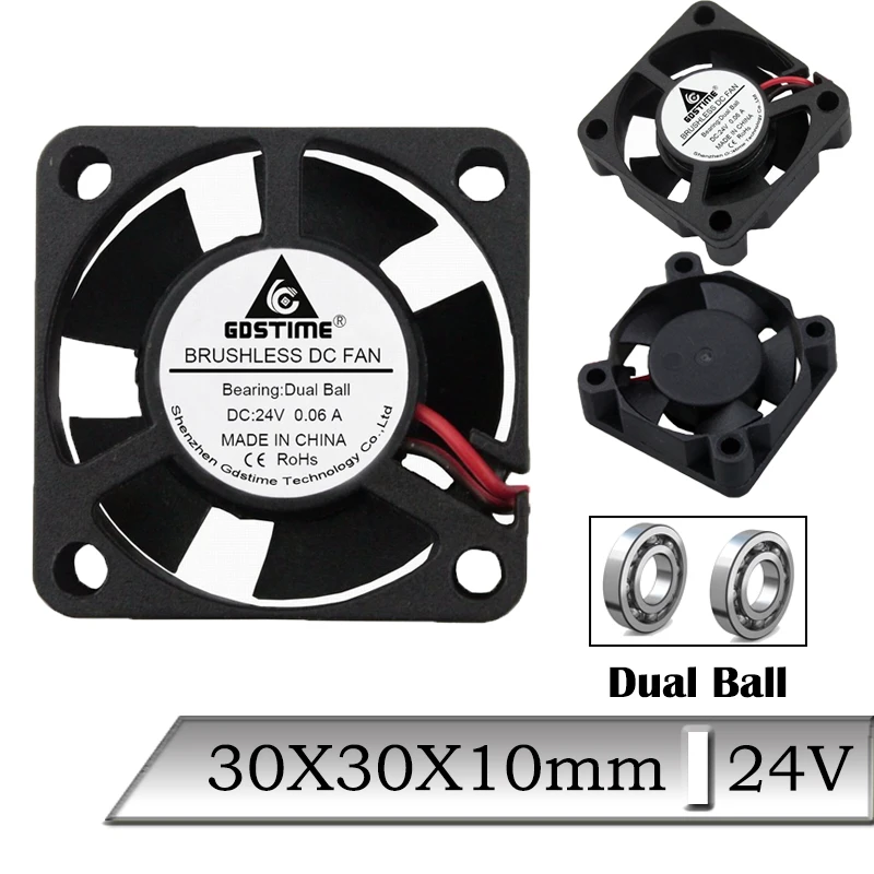 1 шт. Gdstime DC 24 в 30x30x10 мм 30 мм Мини Бесщеточный DC осевой двойной шариковый вентилятор охлаждения 30x10 мм 3 см 3D принтер охлаждающий вентилятор