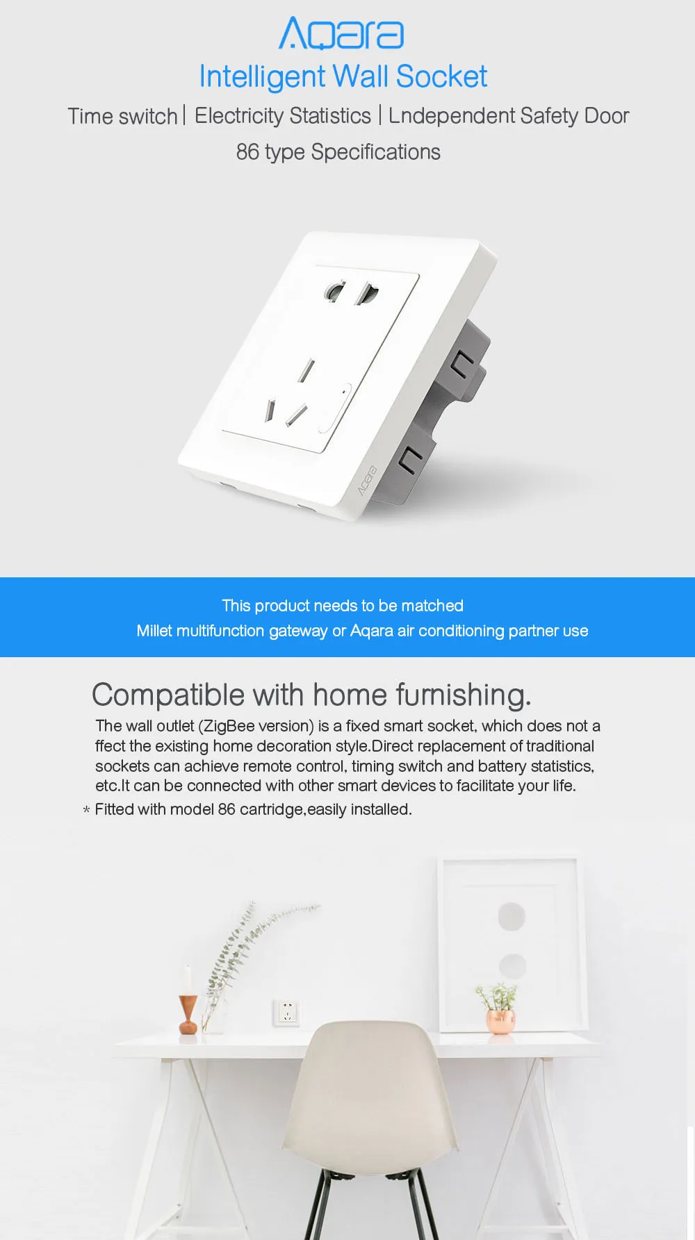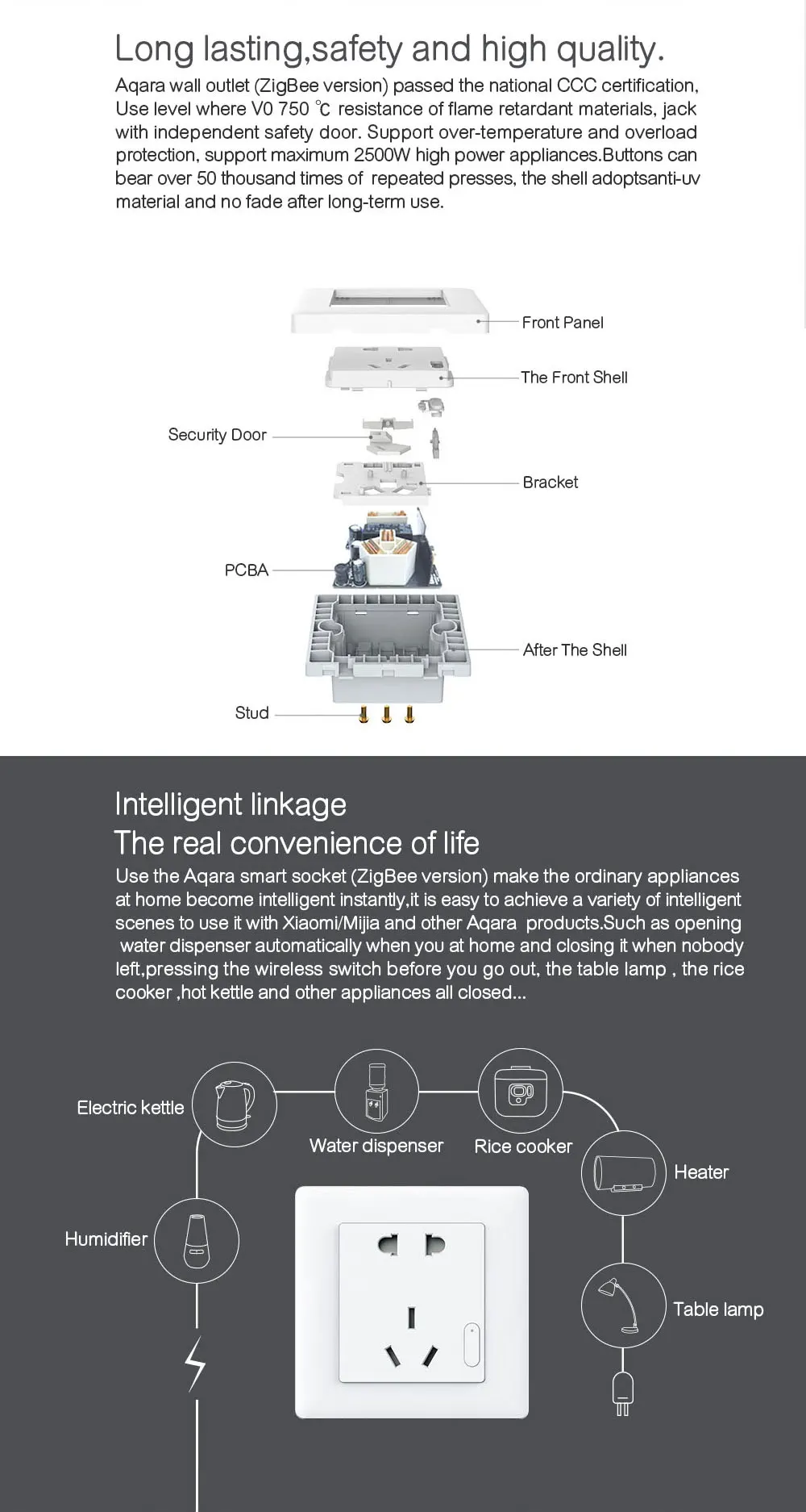 Умная настенная розетка Xiaomi Aqara, настенный выключатель с беспроводным управлением освещением, Zigbee, работает с Mijia Mi home Homekit