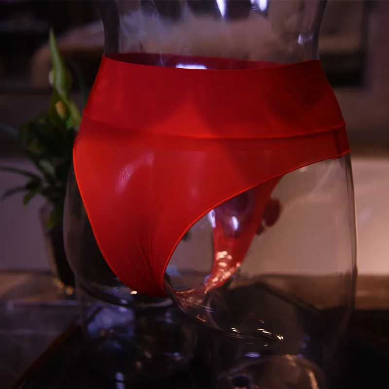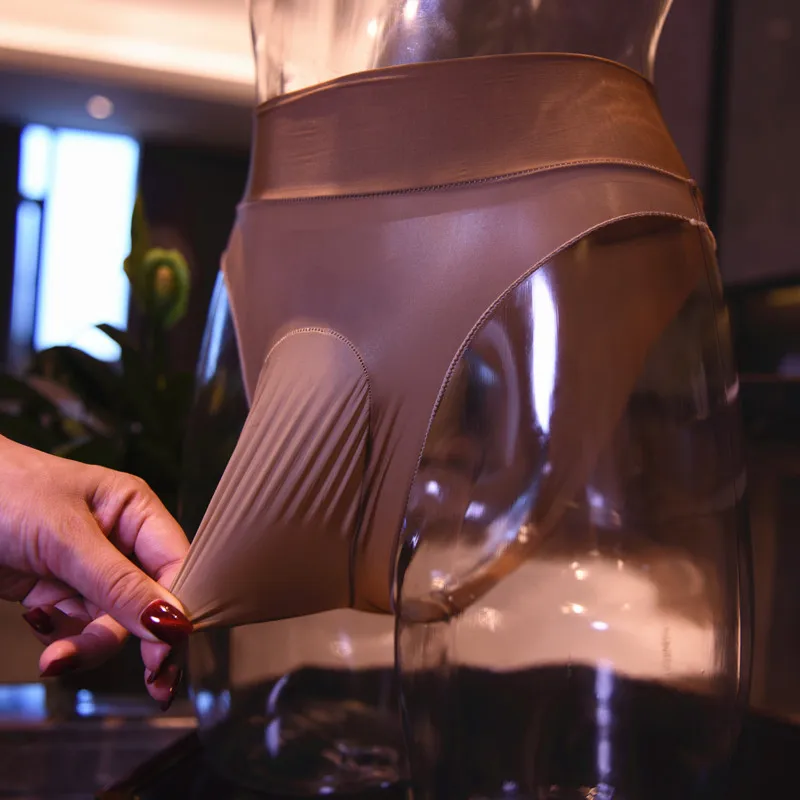 Сексуальный блестящий ледяной шелк U выпуклая сумка G-string прозра...
