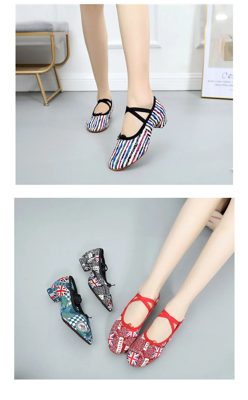 Женские Балетные туфли Hipposeus; Бальные туфли для латинских танцев для девушек; Танцевальная обувь для танго с граффити; Танцевальная обувь для сальсы; Танцевальная обувь