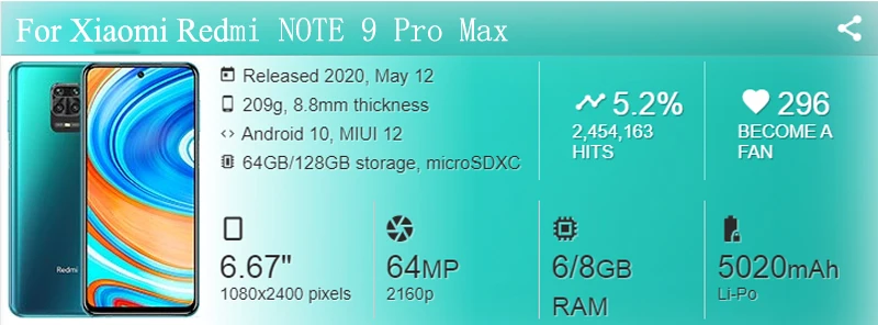 Номер моделиFor Redmi Note 9S/Note 9 Pro/Note 9 Pro Max