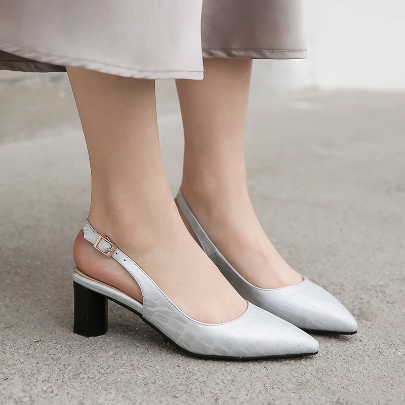 Женская обувь пикантные туфли с петлей на пятке; Туфли-лодочки с острым носком блочным каблуком под крокодиловую кожу с эффектом Для летних вечеринок Туфли под платье размера плюс, большие размеры: 33-46 высокие каблуки 6 см AB373