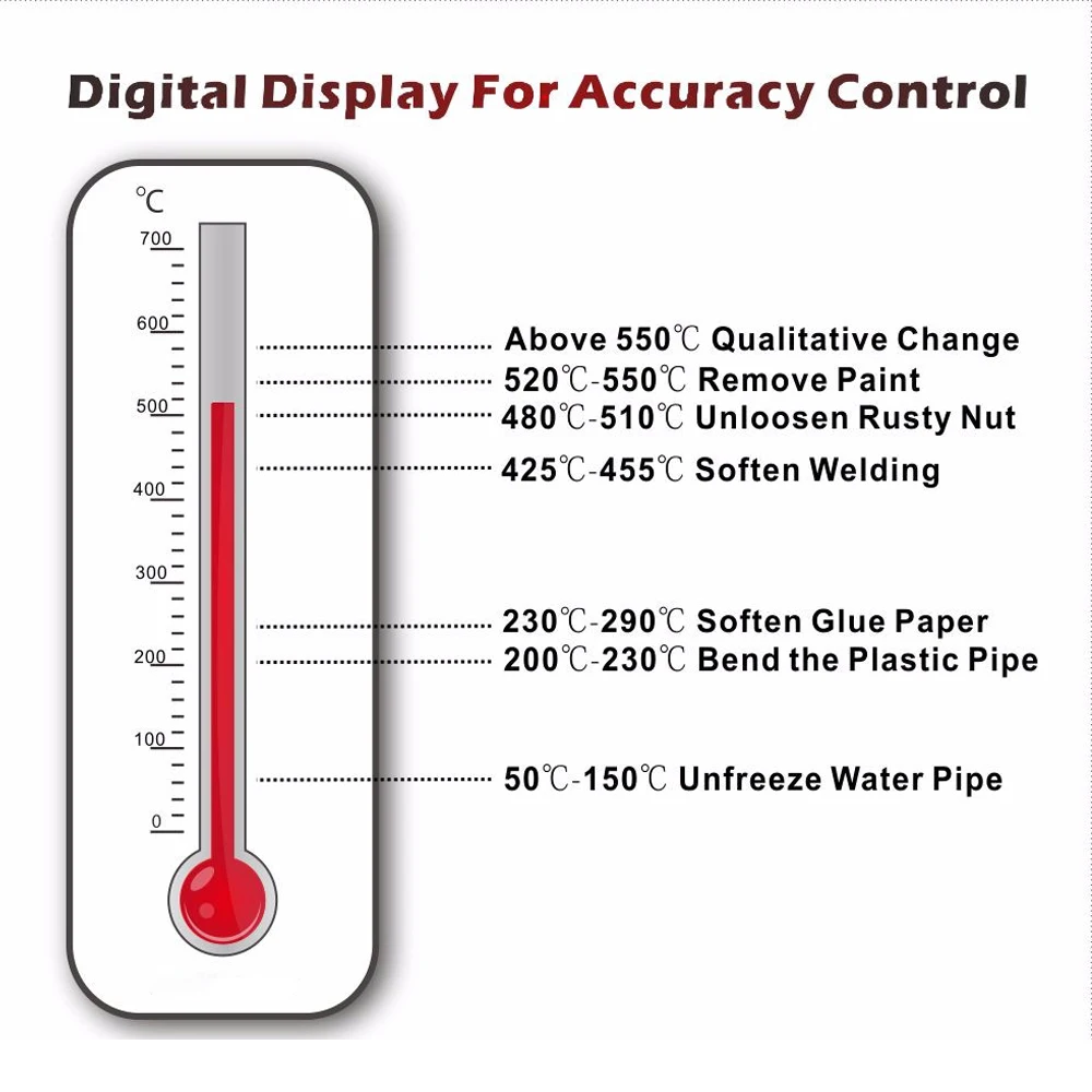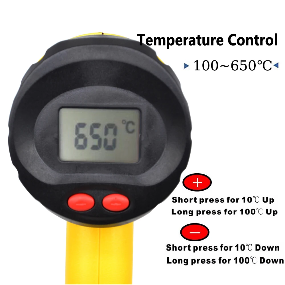 Эта версия имеет два регулятора мощности ветра. И он имеетТерморегулятор с LCD дисплеем. Вы можете отрегулировать температуру на from100-650 градусов по Цельсию.Наши тепловые пушки отличаются от других продавцов. Мы предлагаем вамВысококачественная Тепловая пушка. Мы используем ключевые части хорошего качества вКонтрольная плата, нагревательная катушкаИВоздушный Двигатель.Непередаваемая ценность и хорошее качество.Технические параметры: