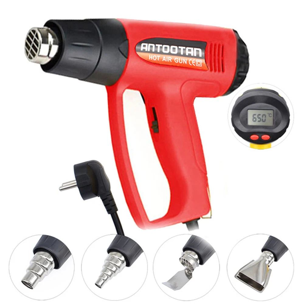 Новый промышленный Электрический термопистолет 2000 Вт 220 В с вилкой ЕС, Терморегулятор с ЖК-дисплеем, термоусадочные оберточные термоусадочные насадки
