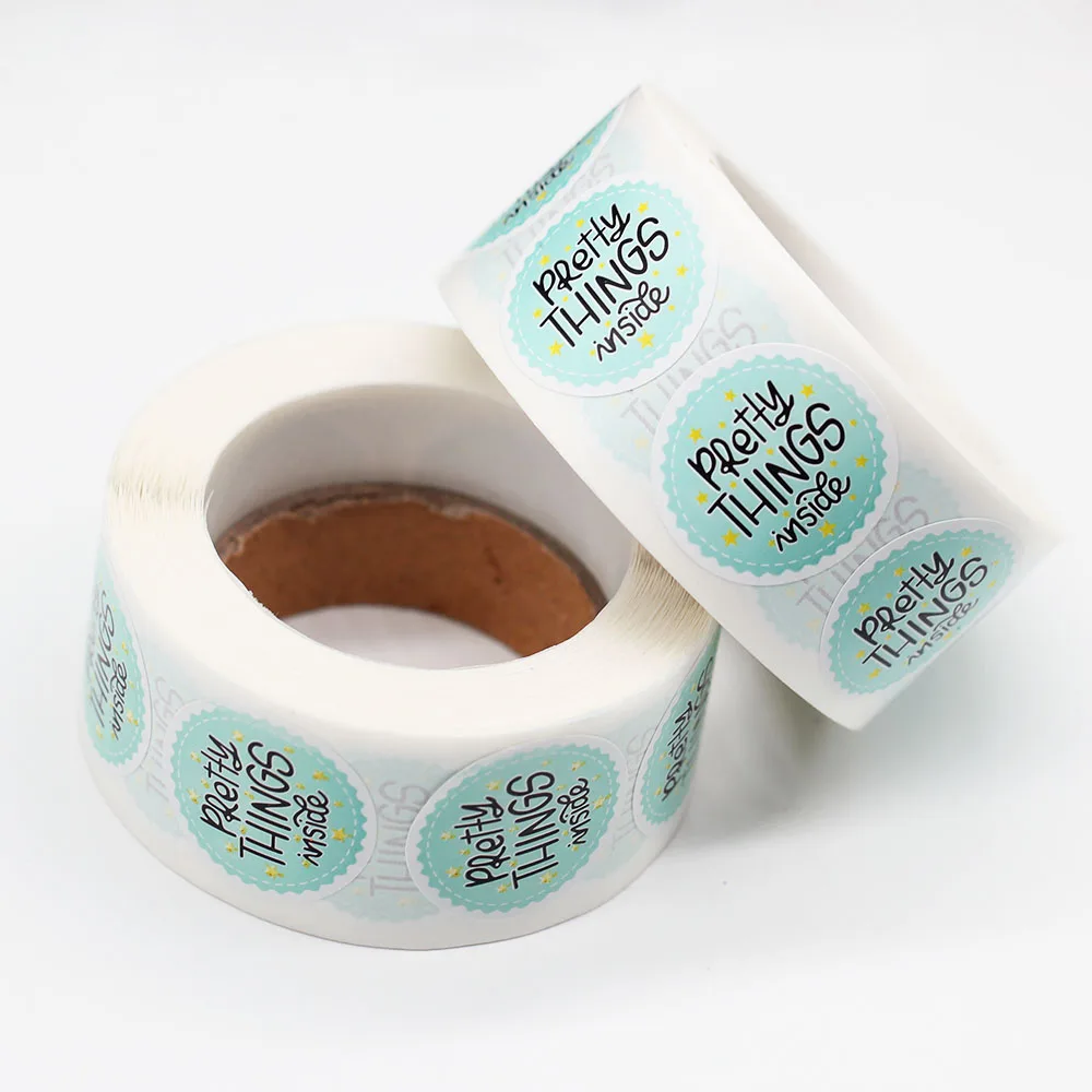 500 шт.рулон, наклейки с синими красивыми штуками внутри, круглые 1 дюйм, спасибо, наклейки, сделай сам, Подарочная коробка для торта, наклейки для украшения