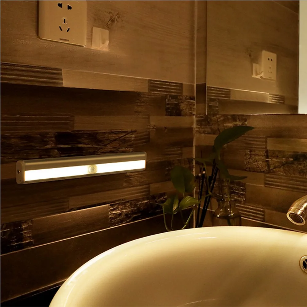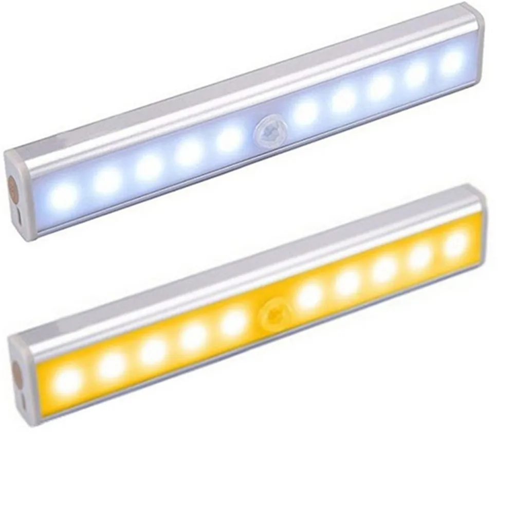 Светодиодная подсветка под шкаф светильник с пассивным инфракрасным датчиком движения на батарейках, 6 10 светодиодов для гардероба, шкафа, кухни, светодиодный ночной Светильник