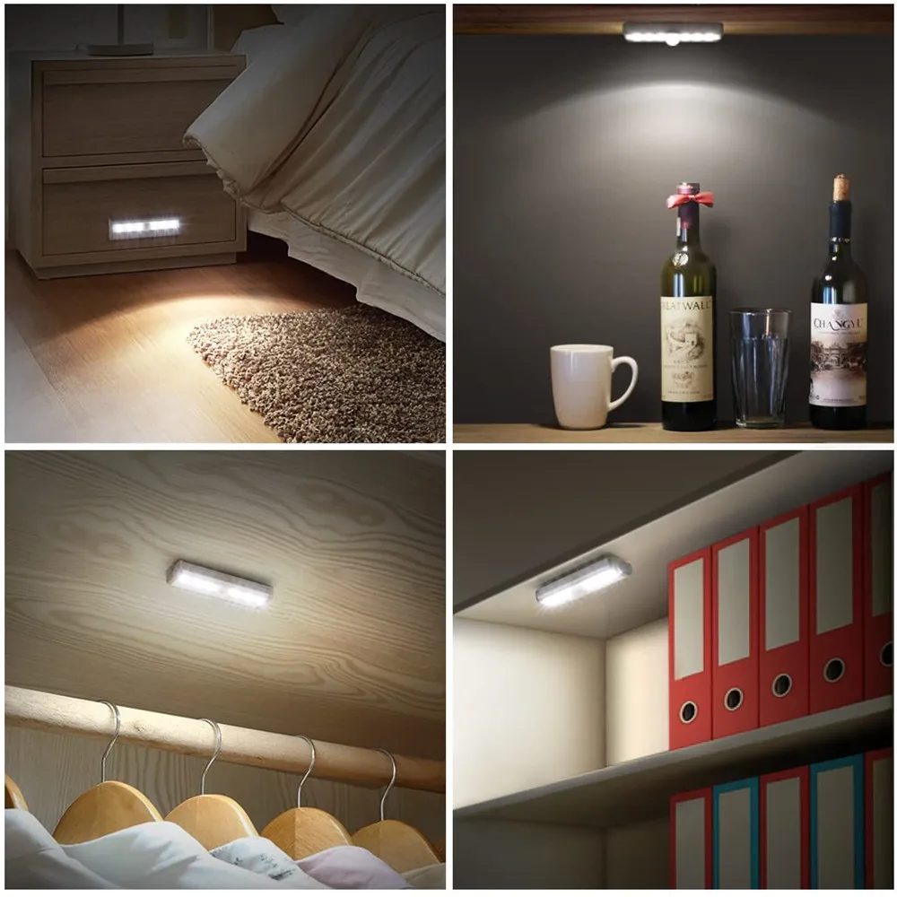 Светодиодная подсветка под шкаф светильник с пассивным ИК датчиком движения на батарейках, 6 10 светодиодов, для гардероба, шкафа, чулана, кухни, светодиодный ночник