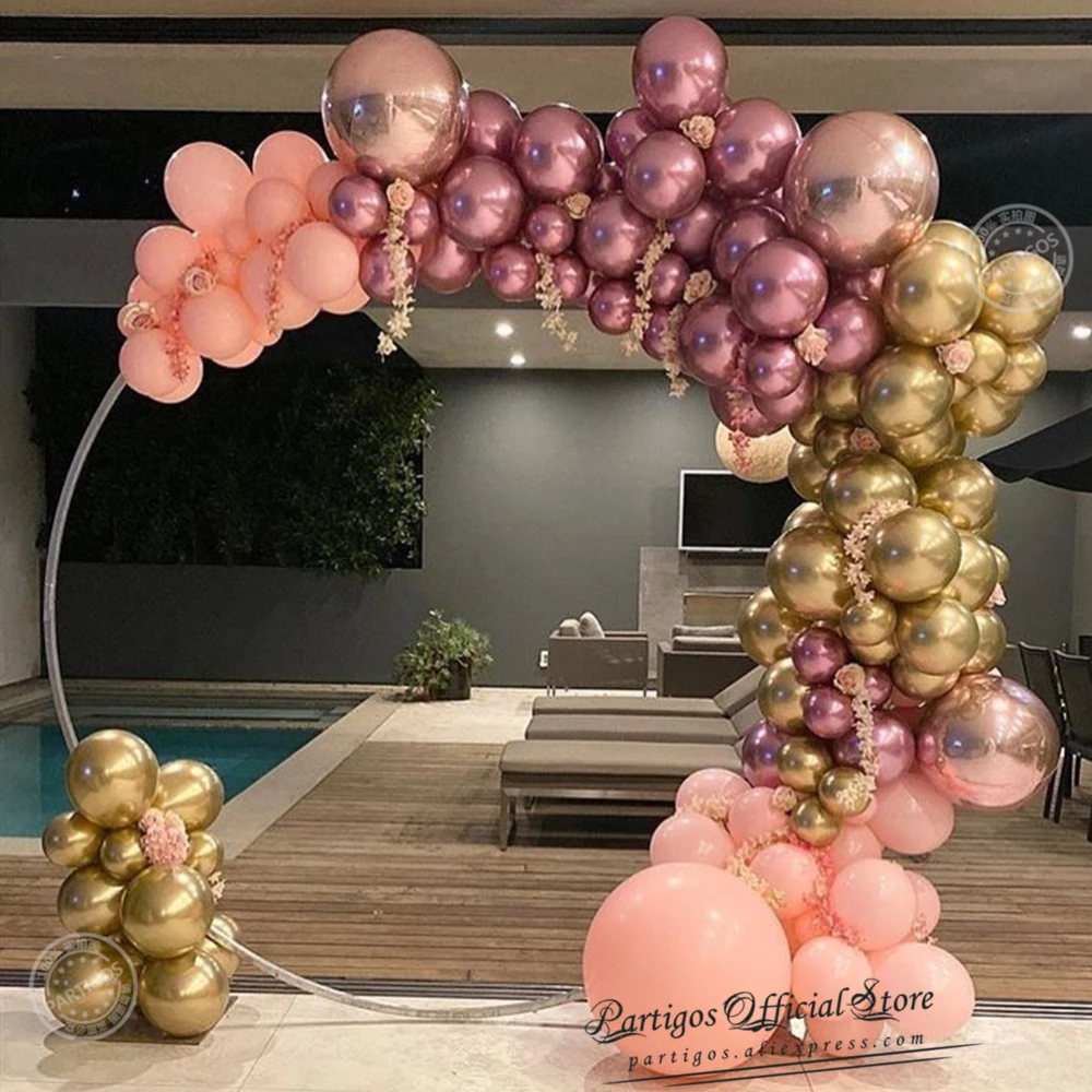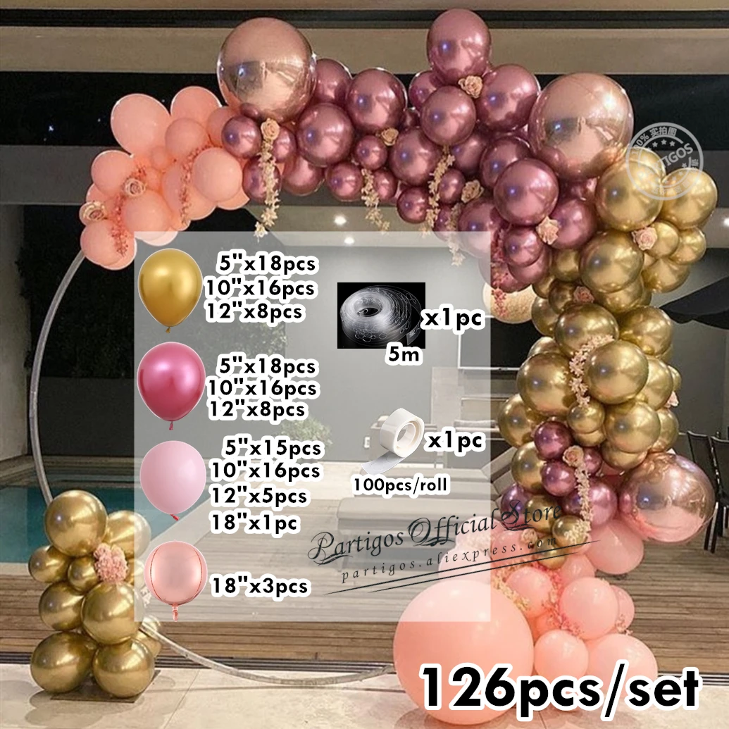 Гирлянда-шарик, многоразмерный комплект золотых, розовых, красных, хромированных шариков, 1 комплект, 126 шт.