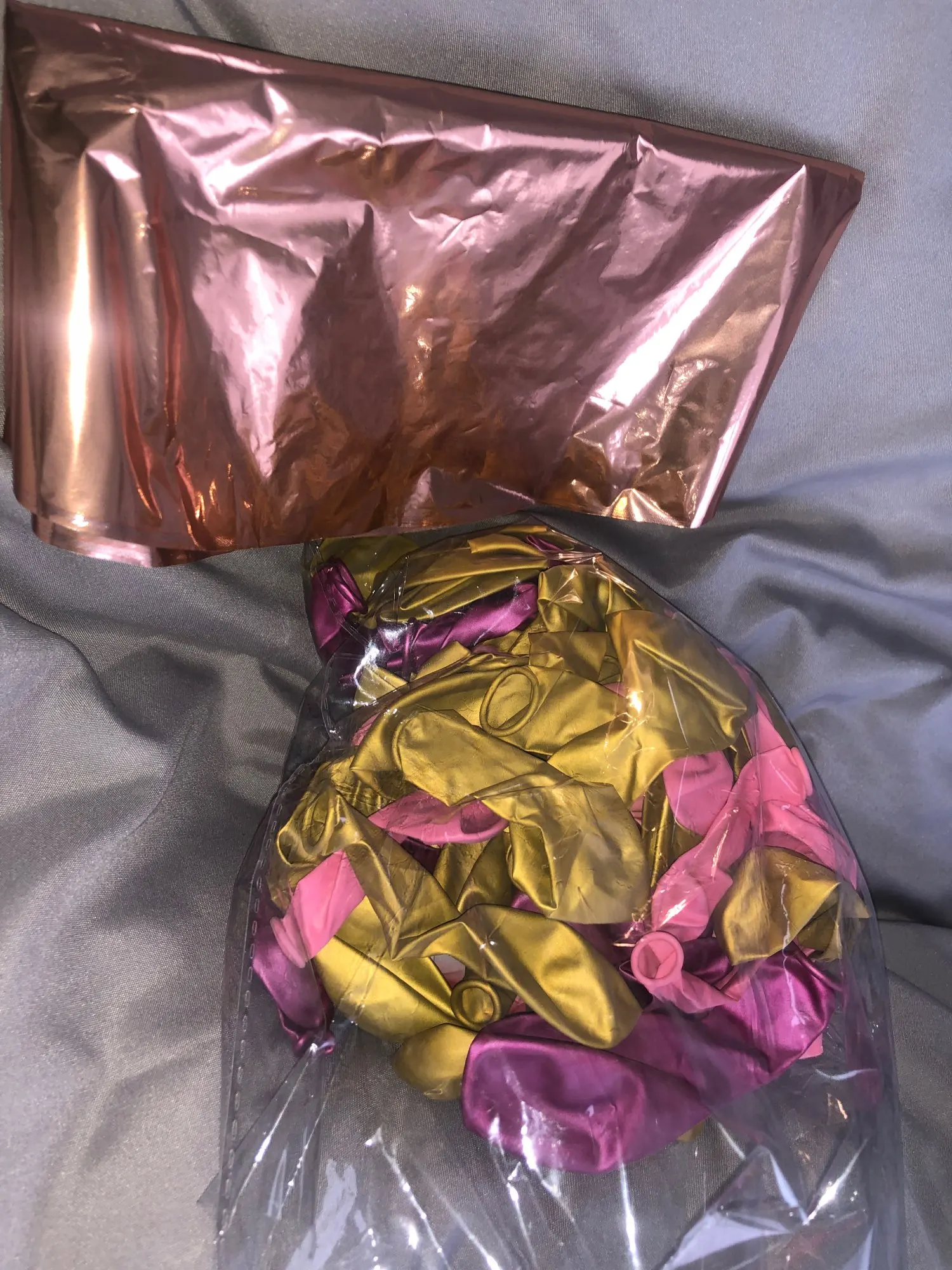 Все товары поставляются в одной упаковке. Прибыла в Великобританию в течение 2 недель. Точно как на картинке, розовое золото. Люблю цветовую схему; Не могу дождаться, чтобы создать свою первую гирлянду для воздушных шаров.