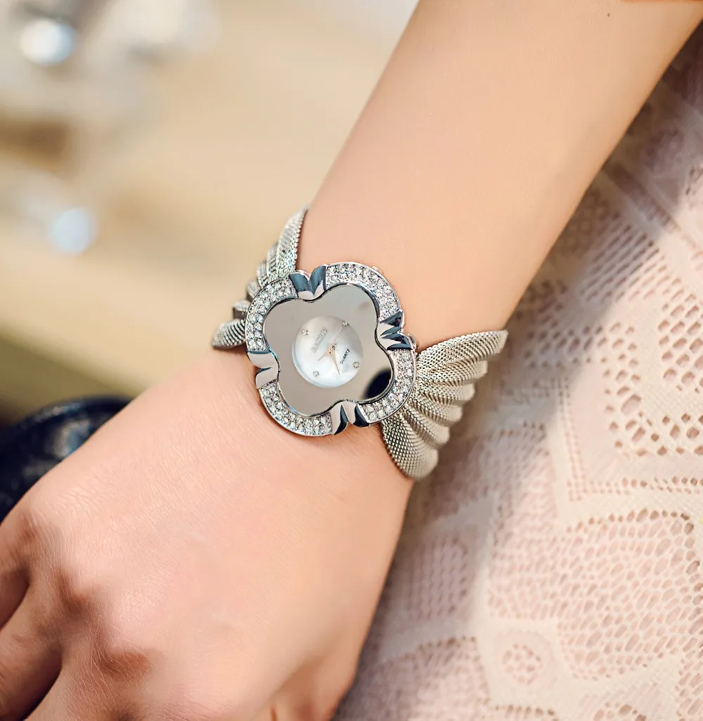 Часы наручные женские, кварцевые, с сетчатым браслетом, со стразами и бабочками