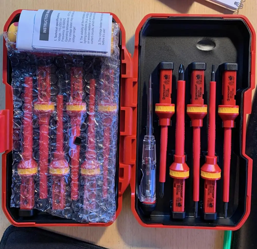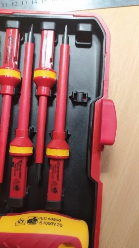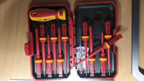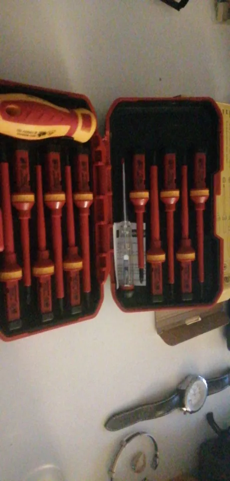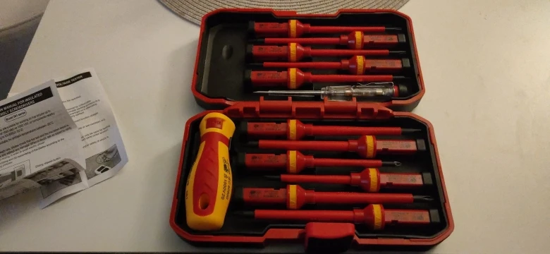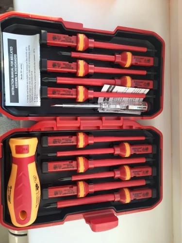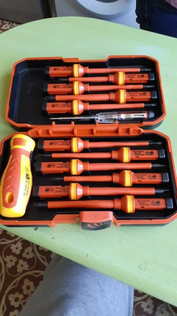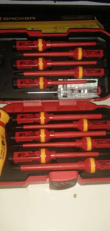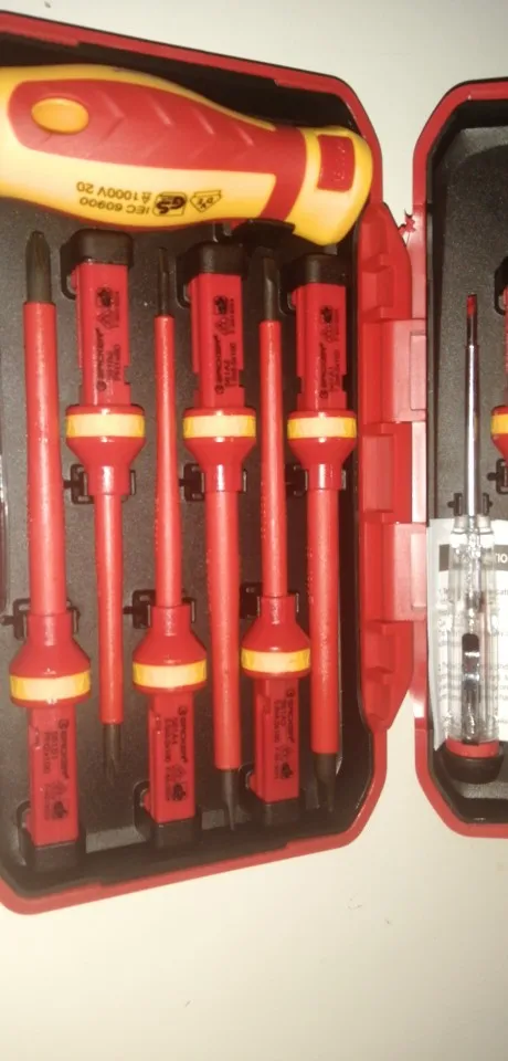 Я искал отвертки со всеми винтовыми отпечатками для электрических материалов и нашел этот набор отверток. Это хорошая маленькая коробка, как описано. Для качества мы увидим в использовании.