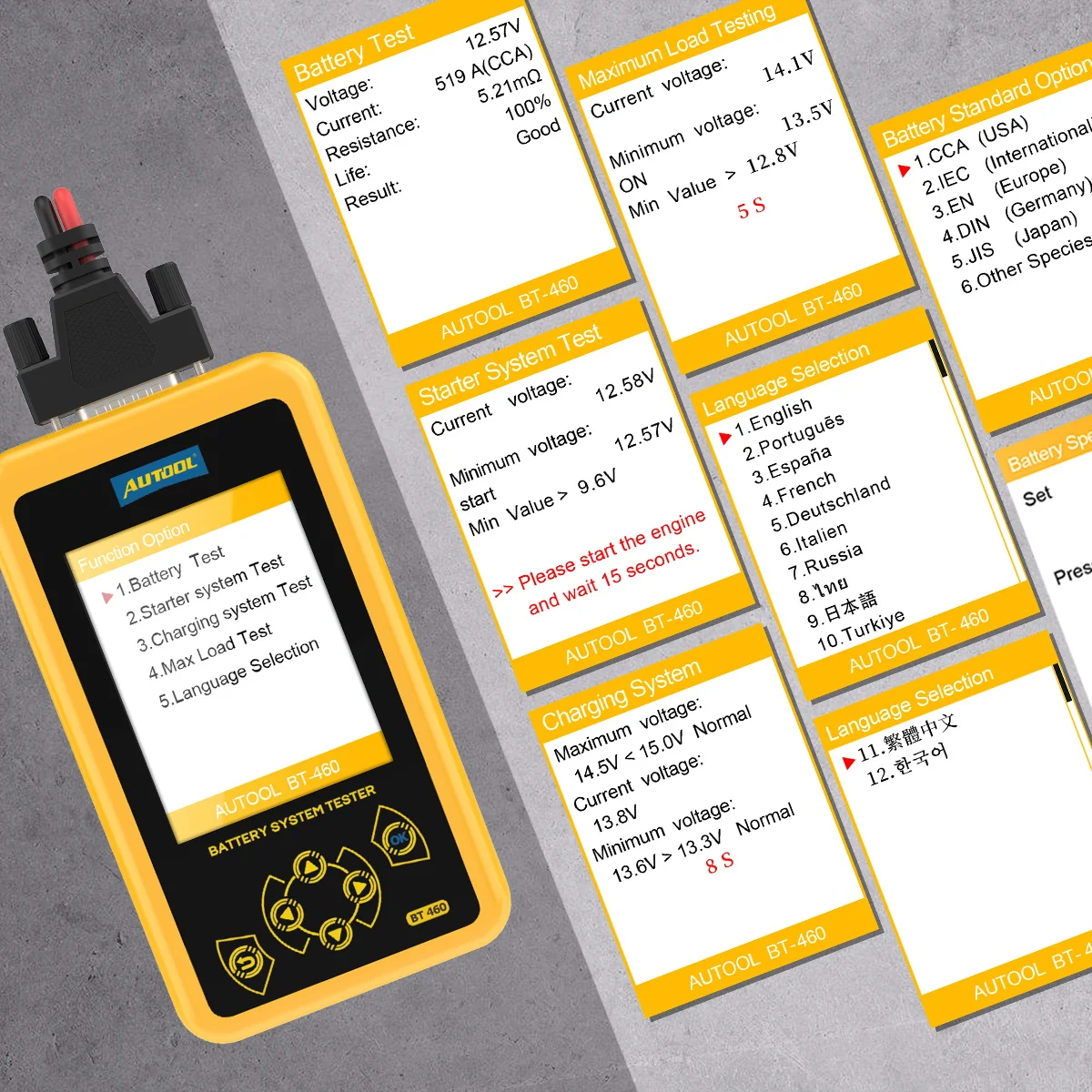 Тестер автомобильных аккумуляторов AUTOOL BT460, 12 В, 24 В