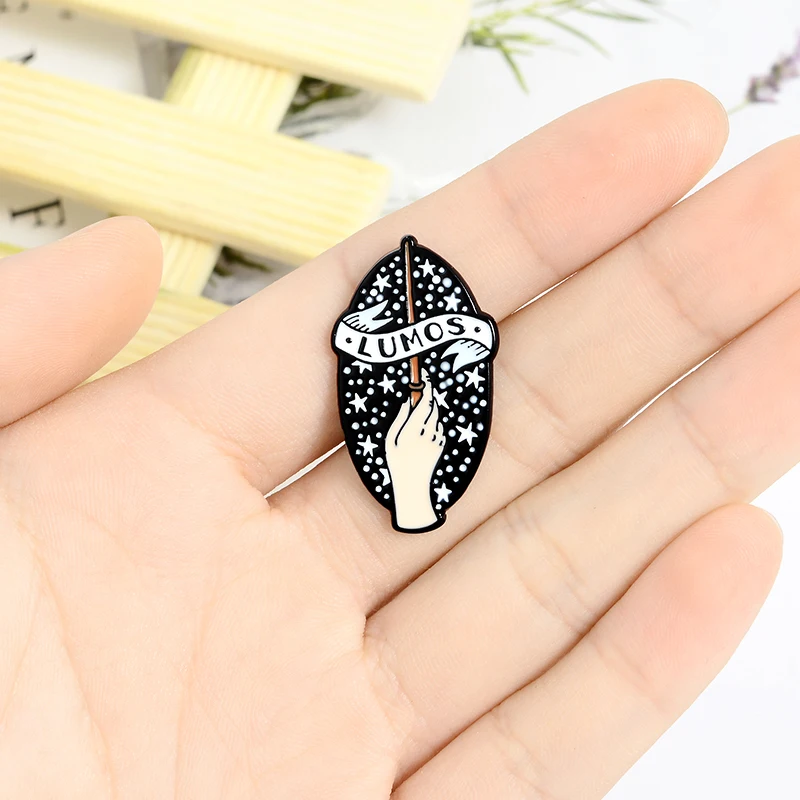 Волшебные заклинания LUMOS эмалевые Броши Булавки черные Волшебные ...