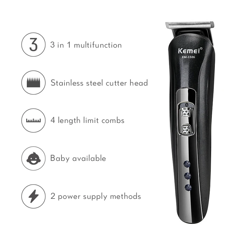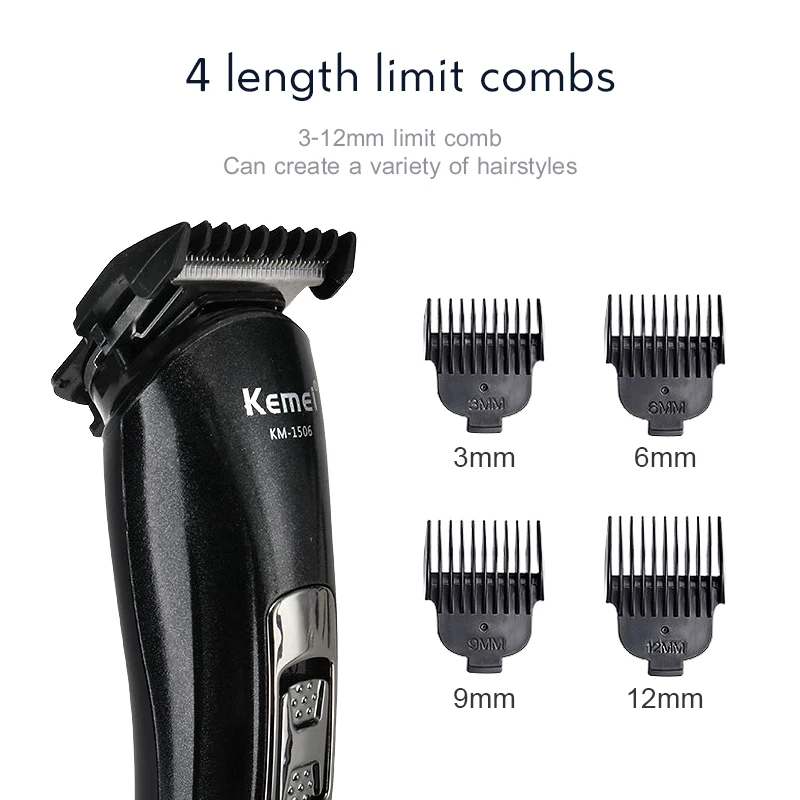Бренд: KemeiМодель: KM-1506Цвет: черныйМатериал: резак из нержавеющей стали, АБС-пластикНапряжение: 220-240 ВЧастота: 50/60 ГцМощность: 3 ВтИсточник питания: перезаряжаемыйЧистка: Очистите щеткой