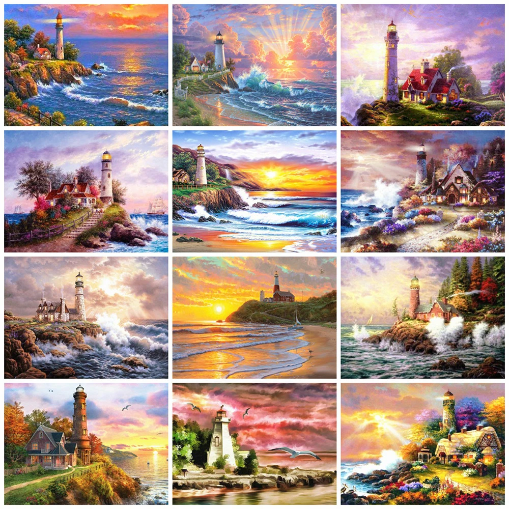 EverShine DIY Алмазная вышивка, маяк, вышивка крестиком, алмазная картина, дом, стразы, картина, ручная работа, хобби, Настенный декор