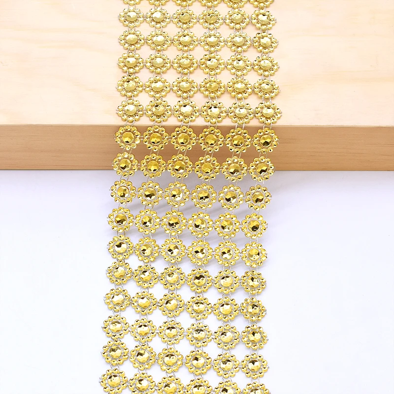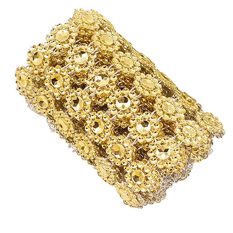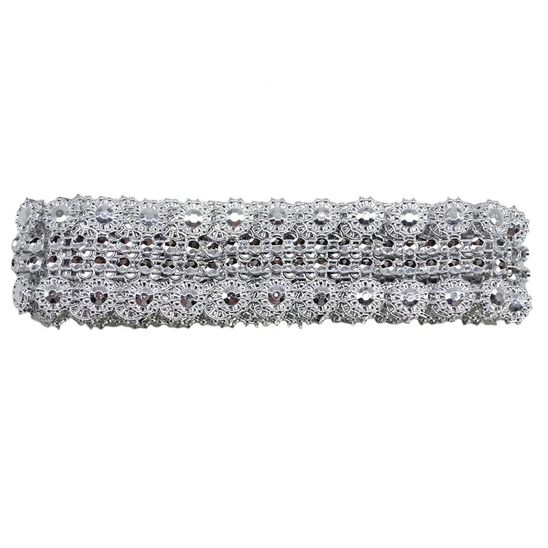 Лента акриловая золотистаясеребристая, с кристаллами, стразы на сетчатой основе пробы, 1 ярд