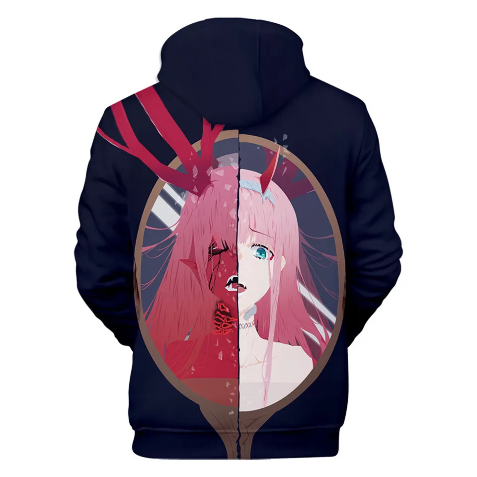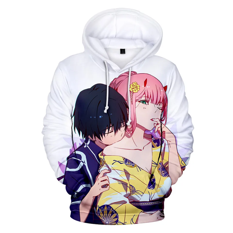 Новинка 2021, милые толстовки унисекс в стиле аниме любимый в Franxx для мужчин и женщин, толстовки с капюшоном Zero Two, осенне-зимняя куртка в стиле Харадзюку