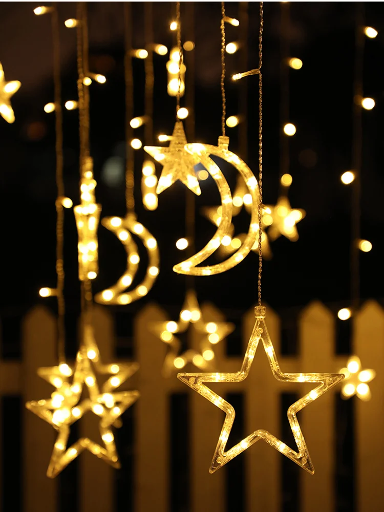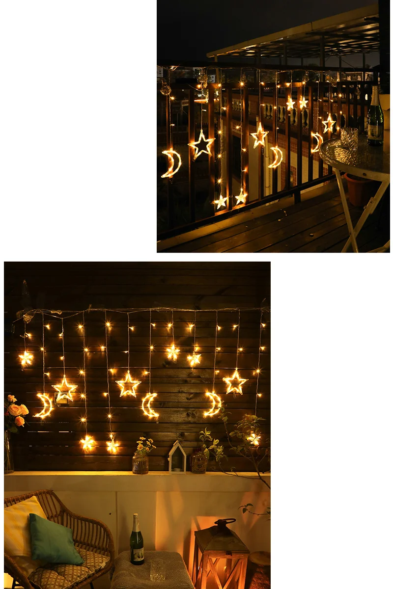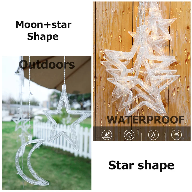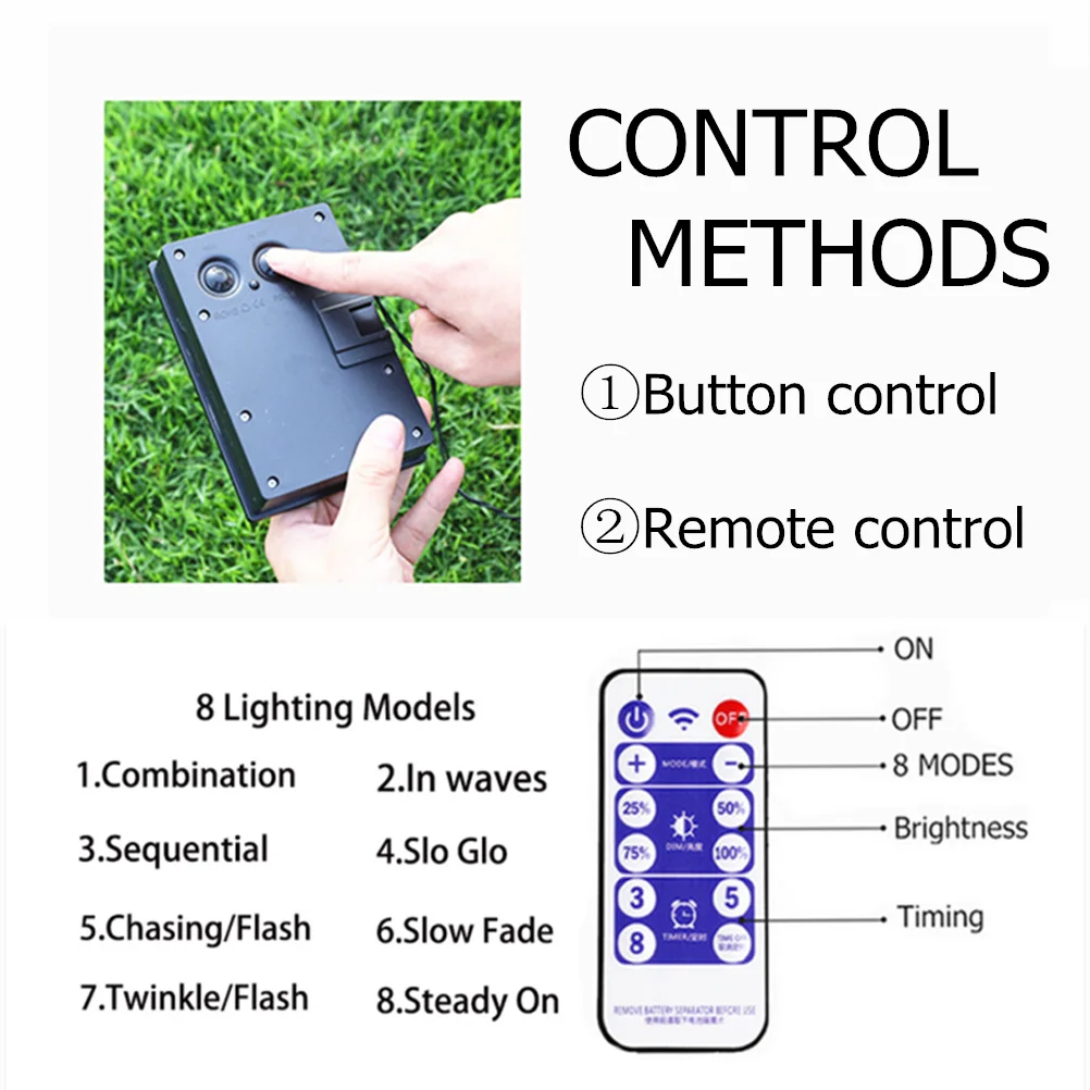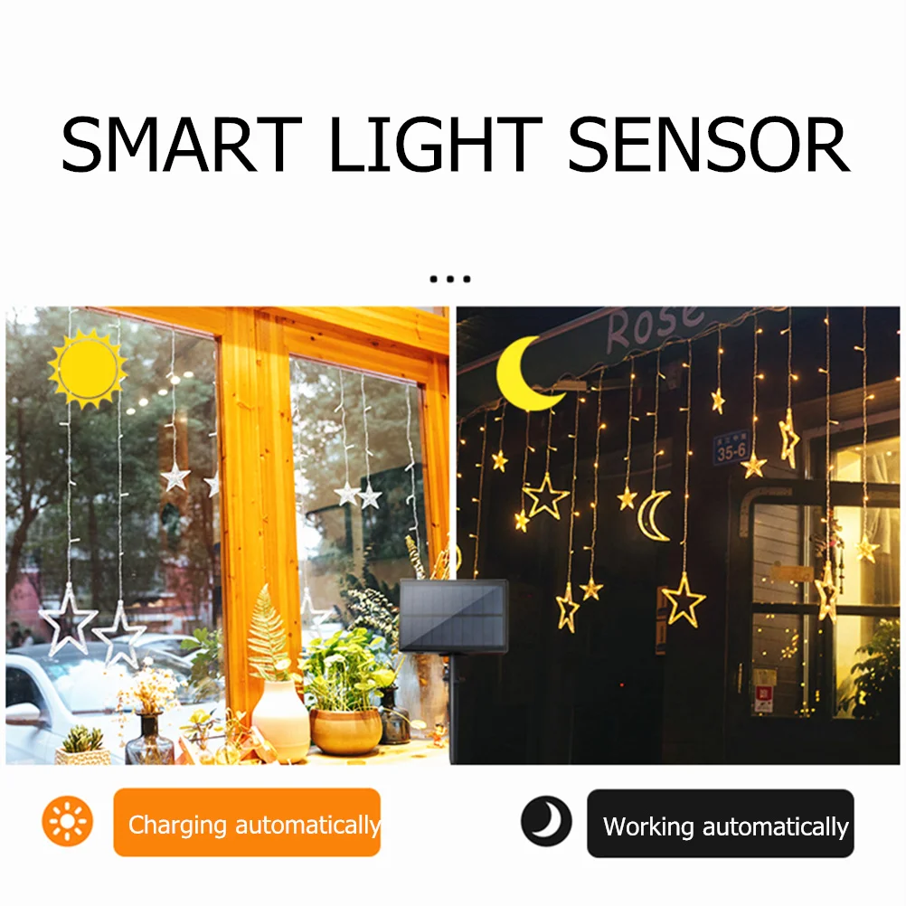 Рождественская гирлянда на солнечной батарее, украшение для сада, водонепроницаемая светодиодная гирлянда на солнечной батарее с пультом ДУ и Луной и звездами, 123 светодиода