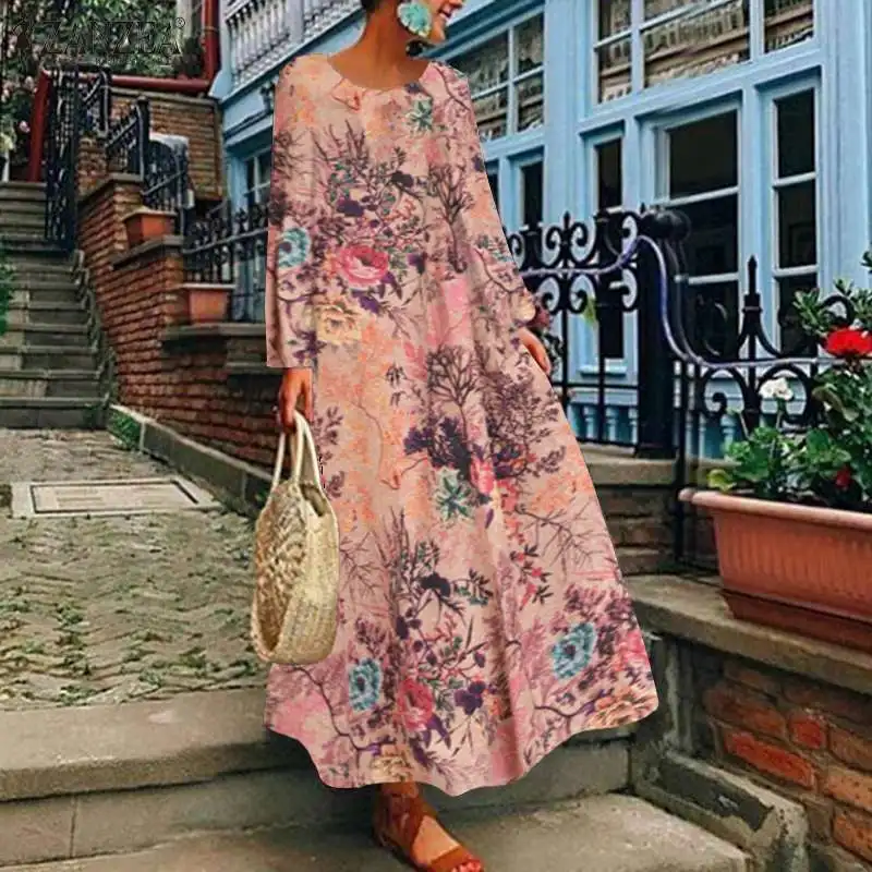Сарафан женский хлопковый с цветочным принтом, с длинным рукавом, в богемном стиле, весна 2021