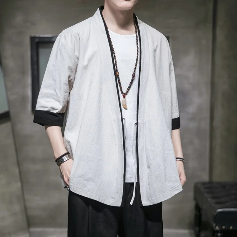 Кимоно FF001Z мужское, традиционное японское кимоно мужское кардиган в стиле Харадзюку, уличная одежда, юката, хаори Оби