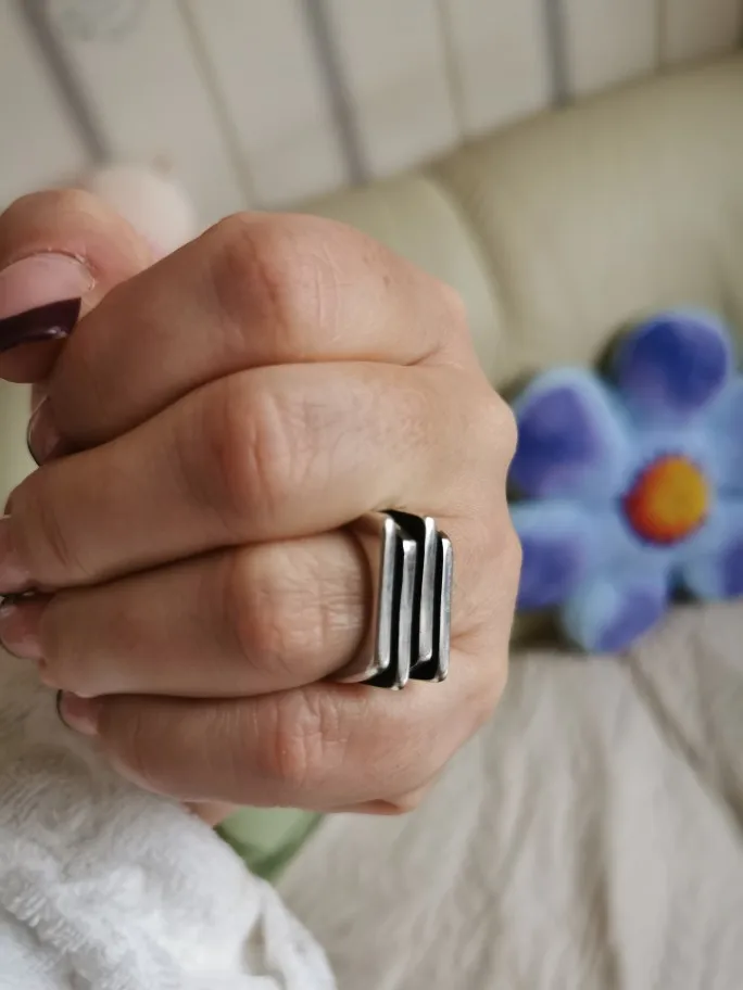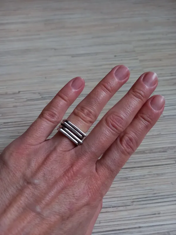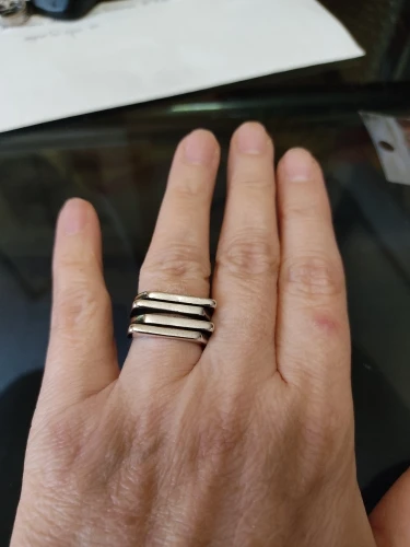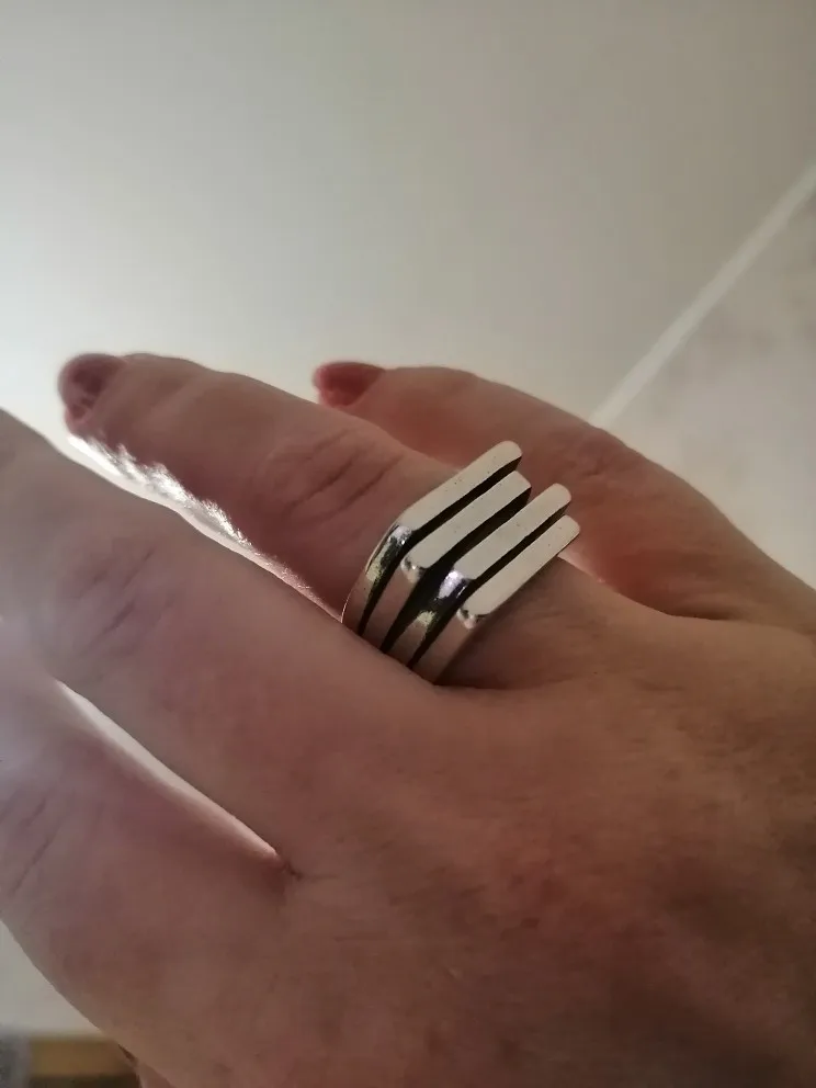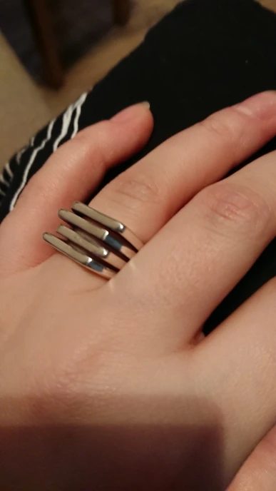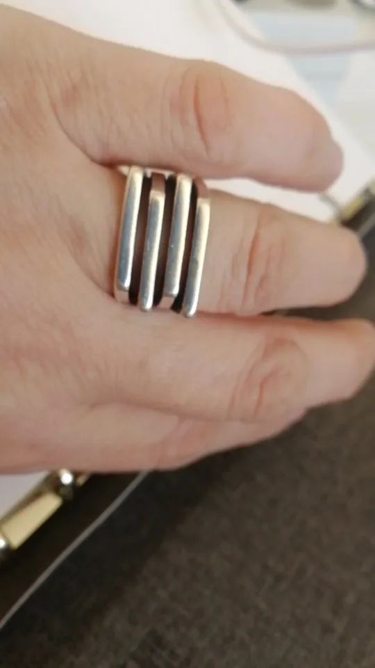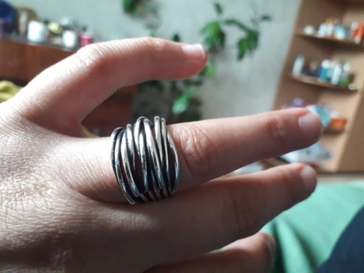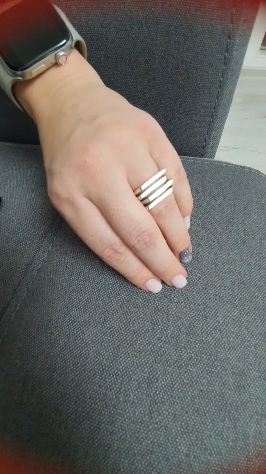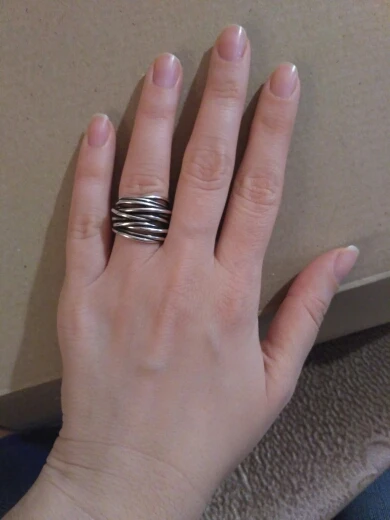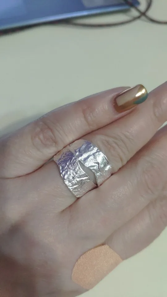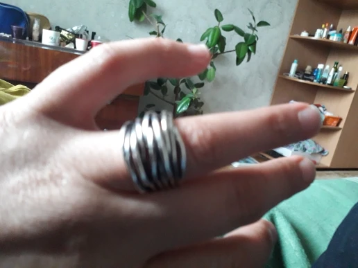 Кольцо смотрится стильно, сразу и не понятно, что это не серебро. размер регулируется. Отлично!