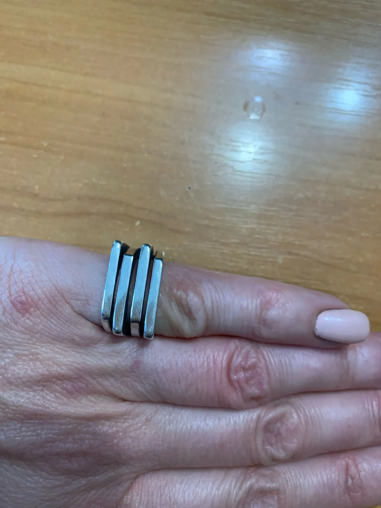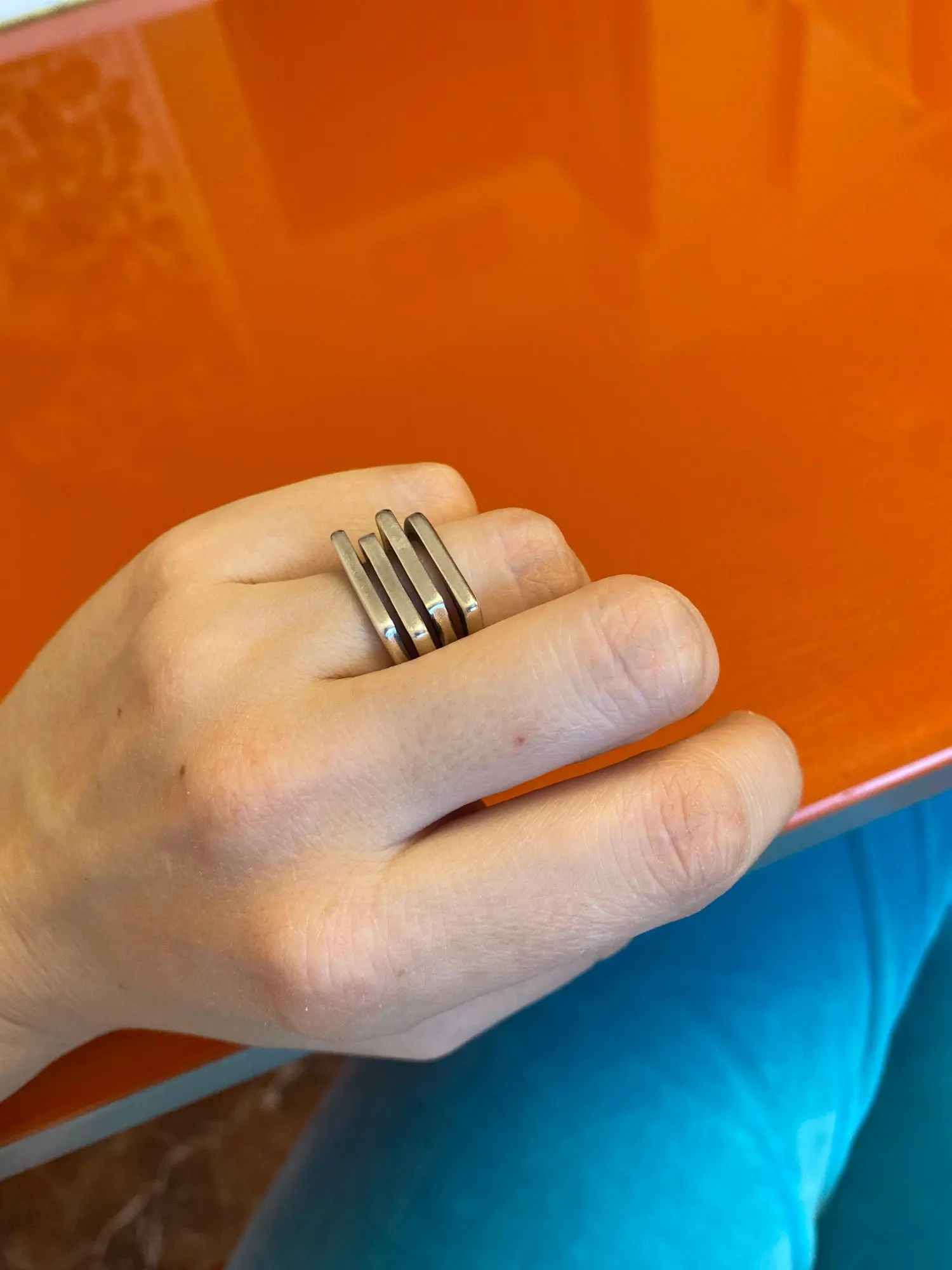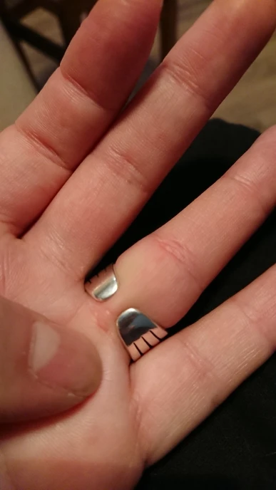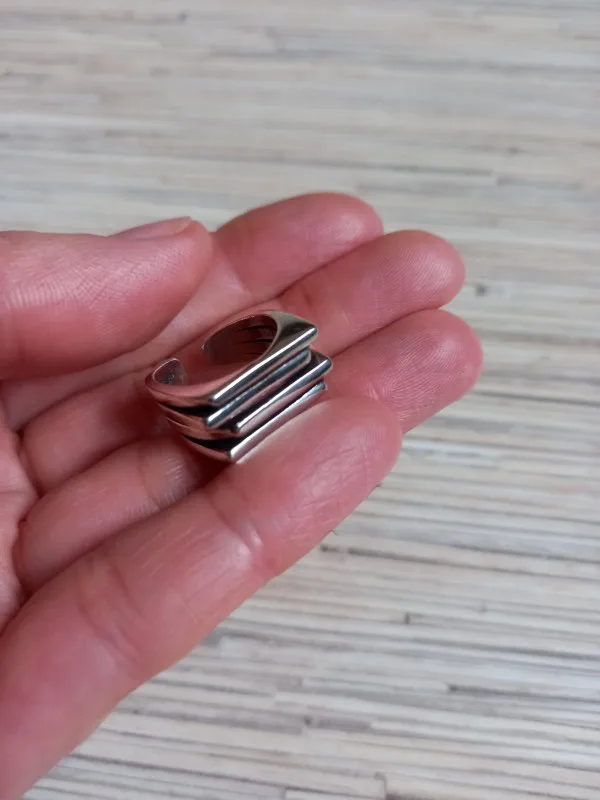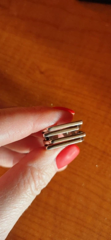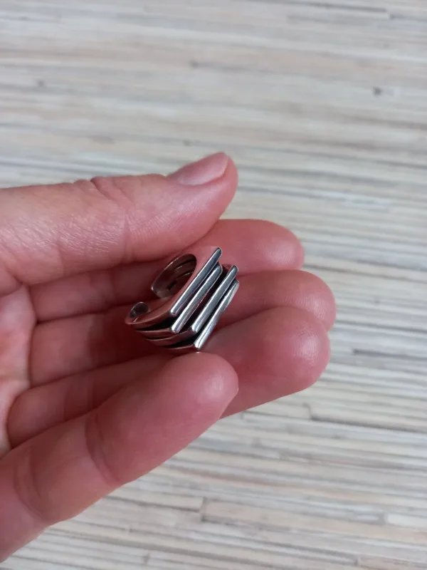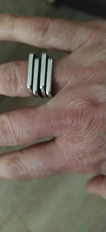 Кольцо смотрится стильно, сразу и не понятно, что это не серебро. размер регулируется. Отлично!