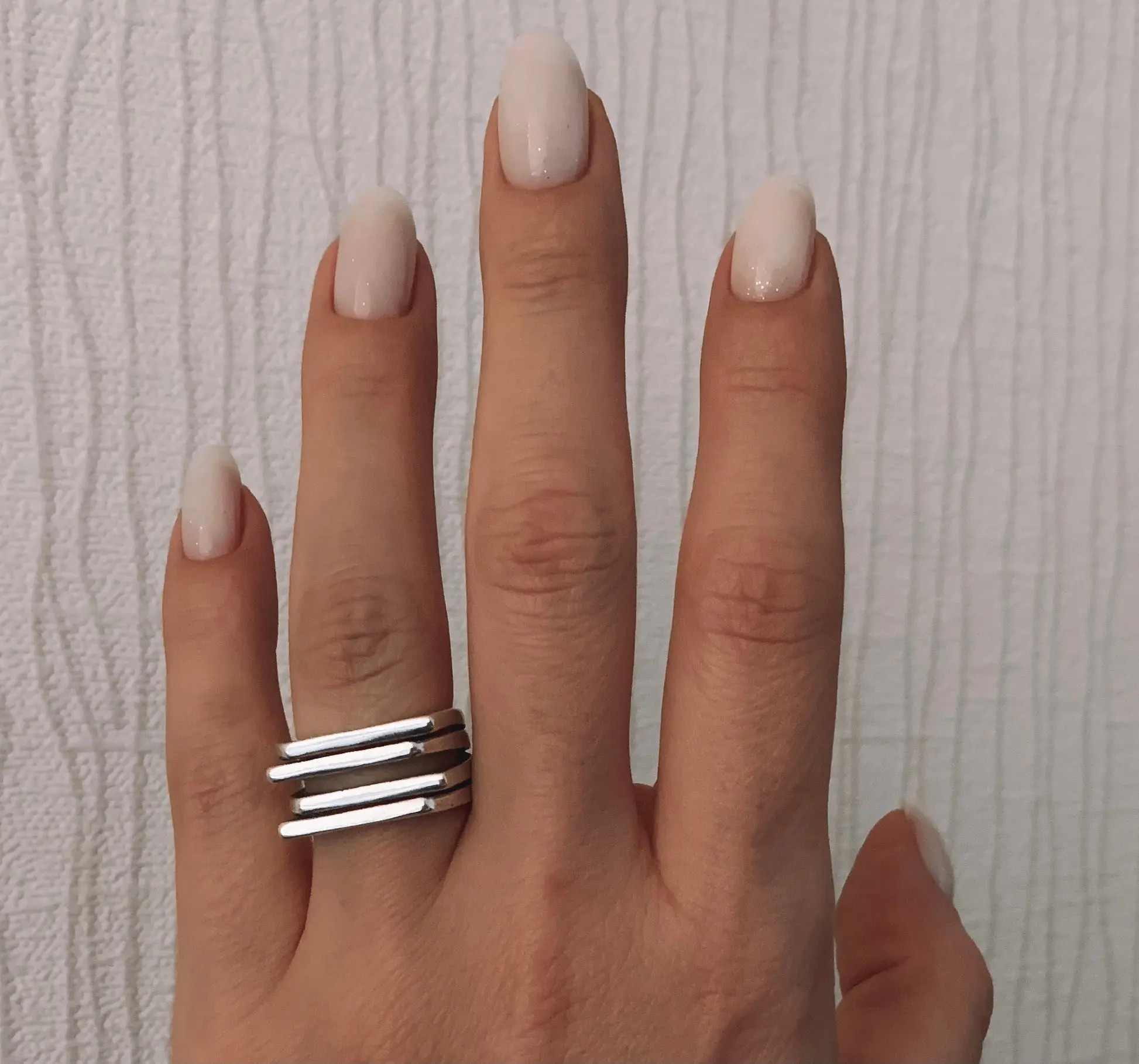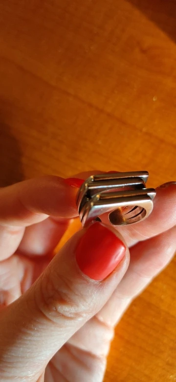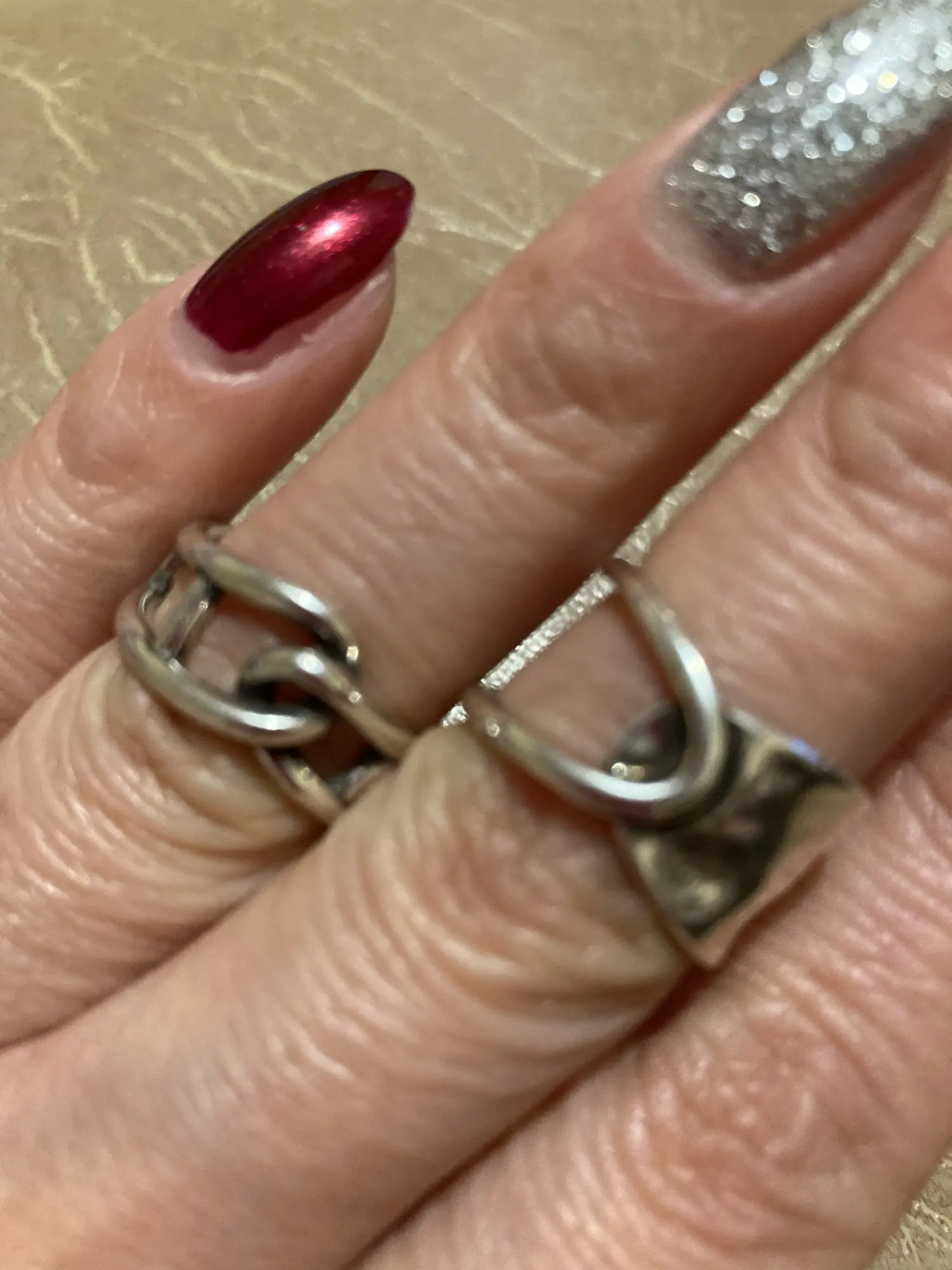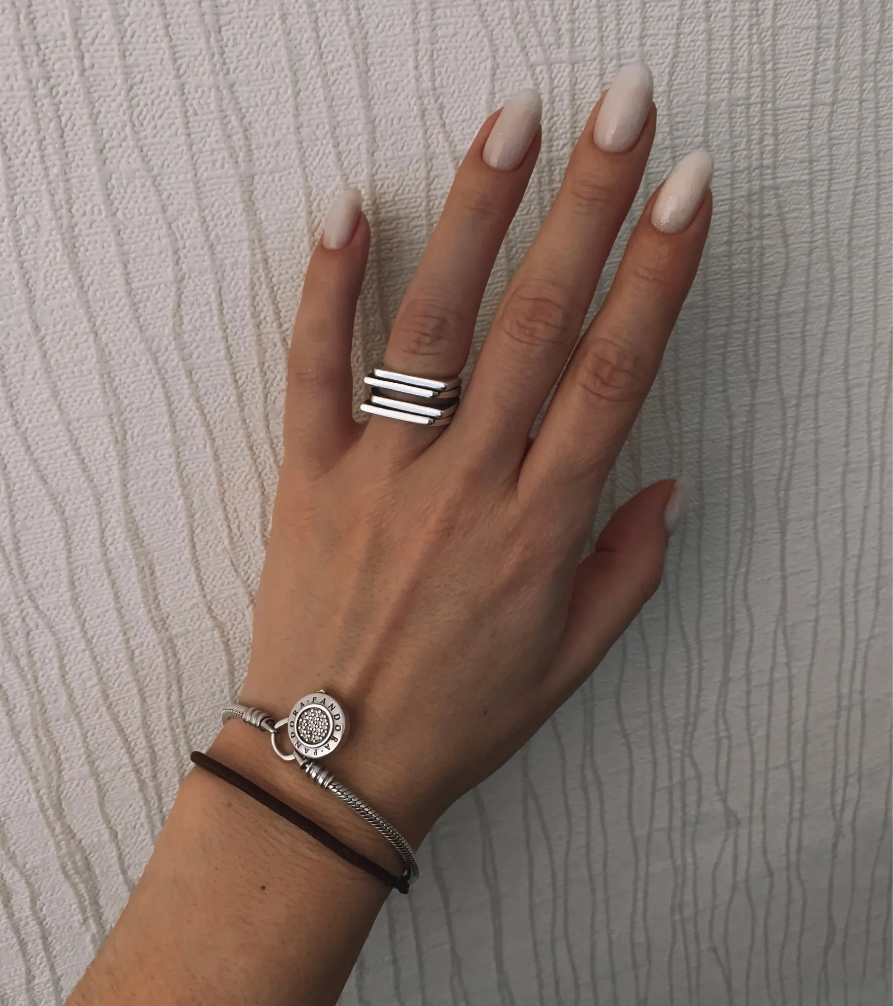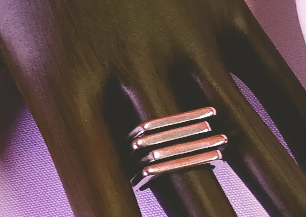 Кольцо смотрится стильно, сразу и не понятно, что это не серебро. размер регулируется. Отлично!