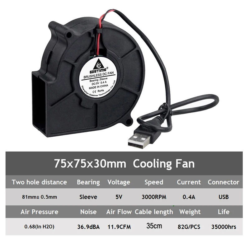 5V USB 75 мм x 30 мм турбины центробежные Вентилятор охлаждения