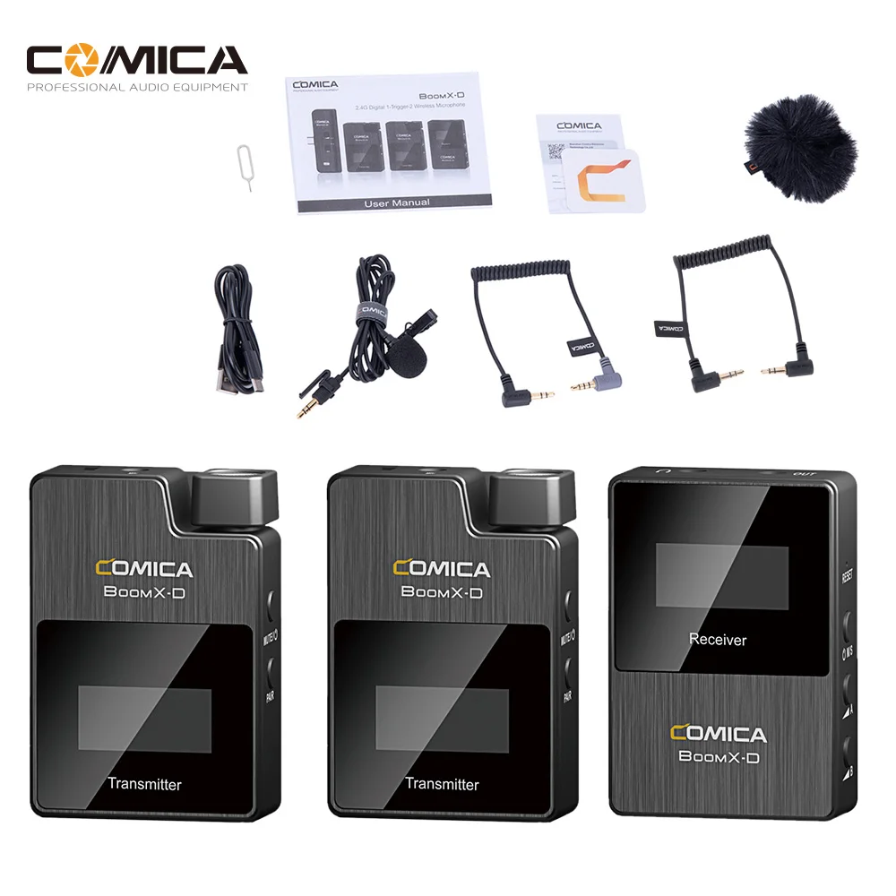Цифровая беспроводная микрофонная система Comica BoomX-D D2, петличный нагрудный микрофон, ретранслятор, передатчик, комплект для цифровых зеркальных фотоаппаратов, смартфонов